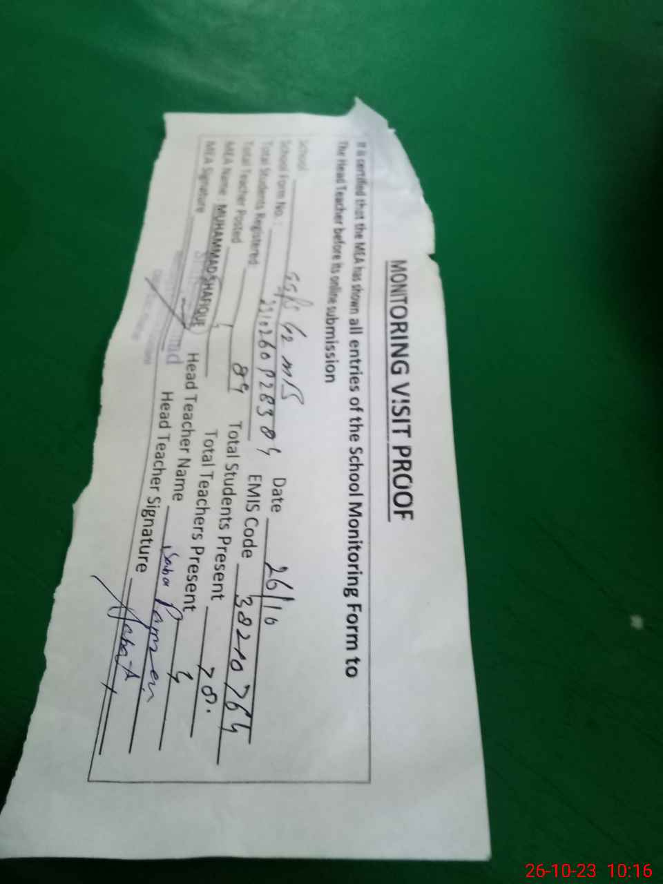 | Certified that this School was Inspected by the Undersigned MEA/DMO Today and the Information Stated Above is as Per Record. | |||||