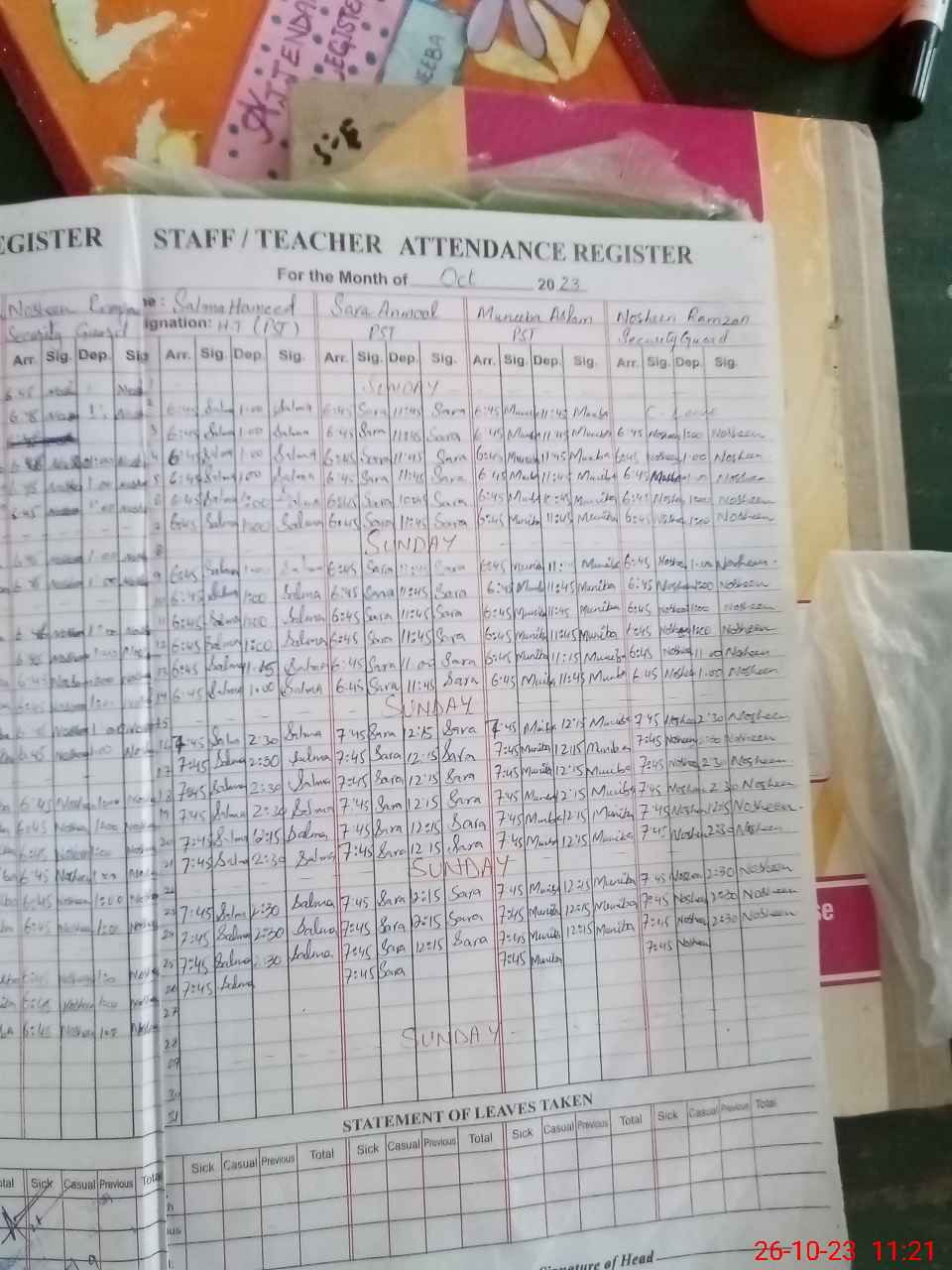| Leave | Duty | Absent | Maternity | Medical | Ex- Pak |