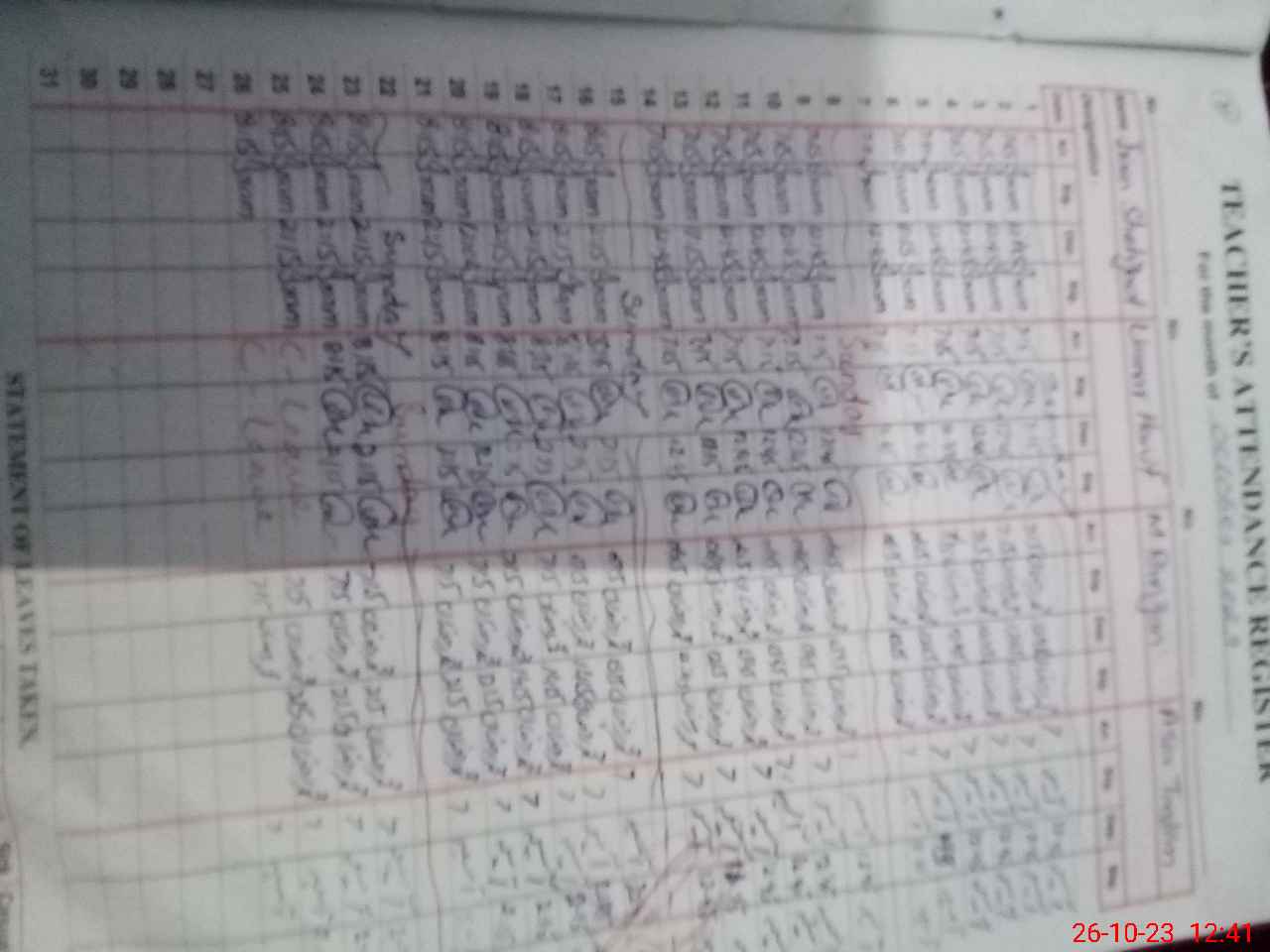 | 36**** | Um**** Ha**** | 2 | 2 | 0 | 0 | 0 | 0 | 0 | 0 | 0 | 2 | Absent (Un-Authorized) | |