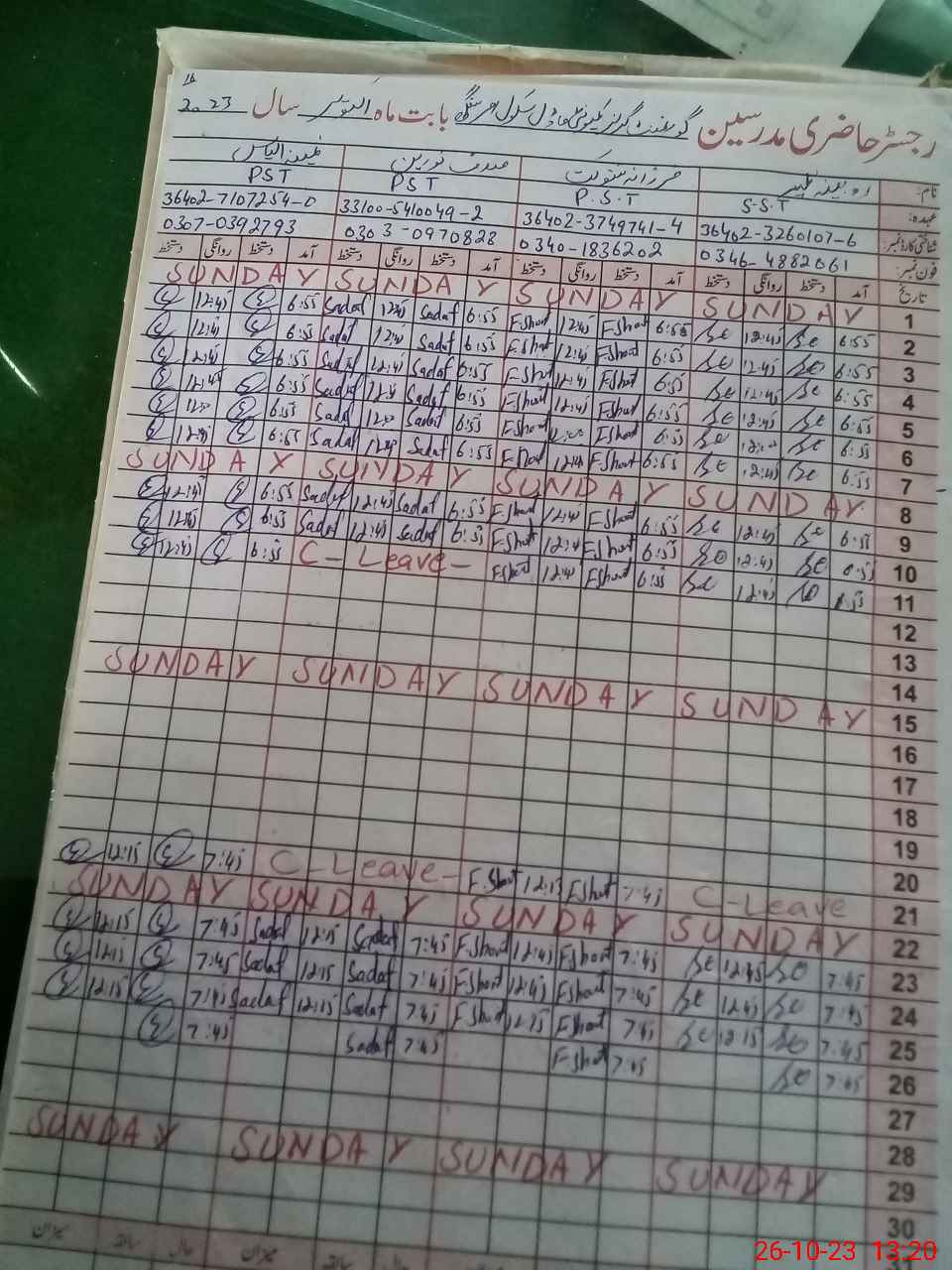 | Name: RO**** ZA**** Designation: (School Headmaster's/Headmistress's) SST (GENERAL) Phone/Cell Number: 03**** |