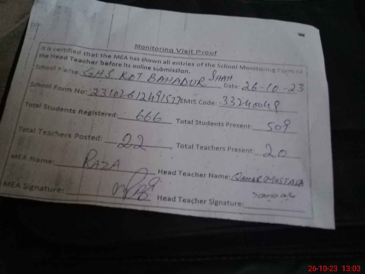 | EMIS Code: 33240049 | Name of School: GHS KOT BAHADAR SHAH | |||