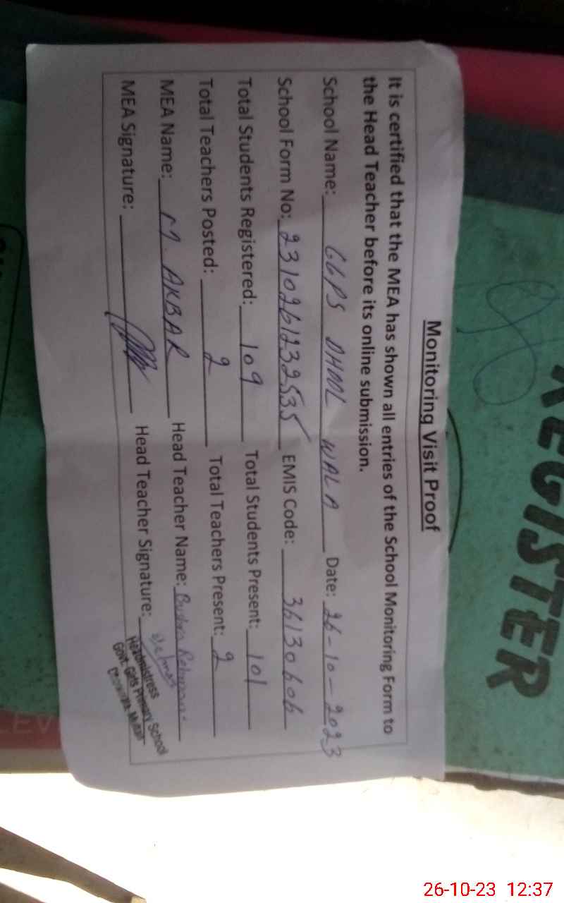 | EMIS Code: 36130606 | Name of School: GGPS DHOOL WALA | |||