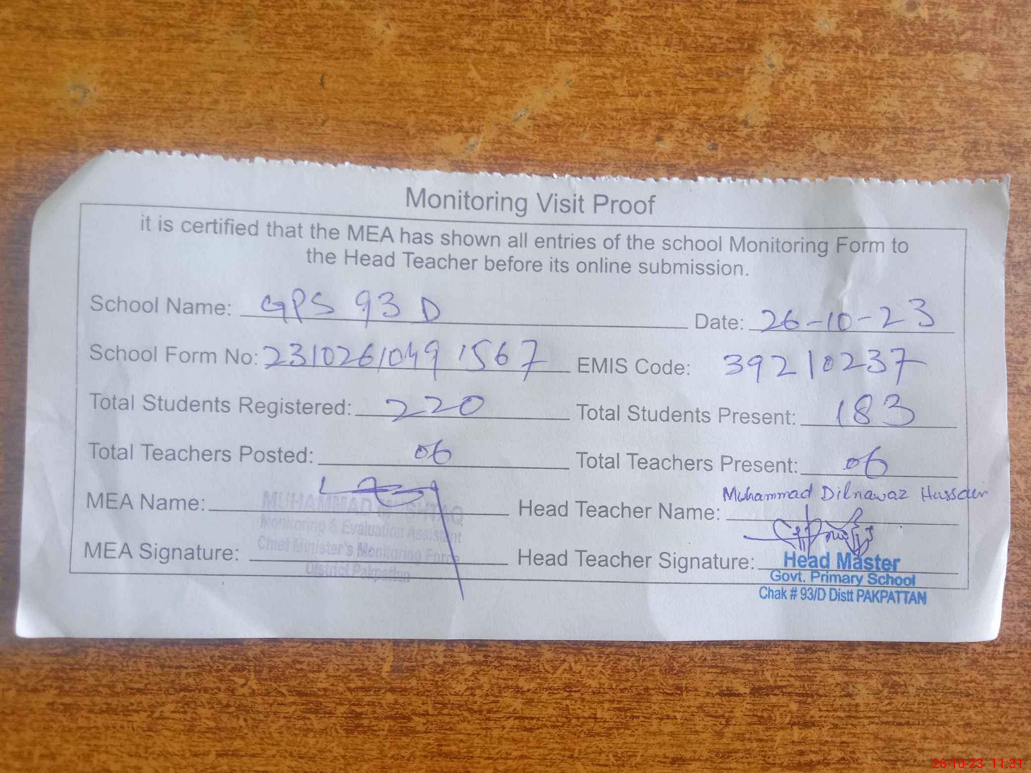 | EMIS Code: 39210237 | Name of School: GPS 93/D | |||