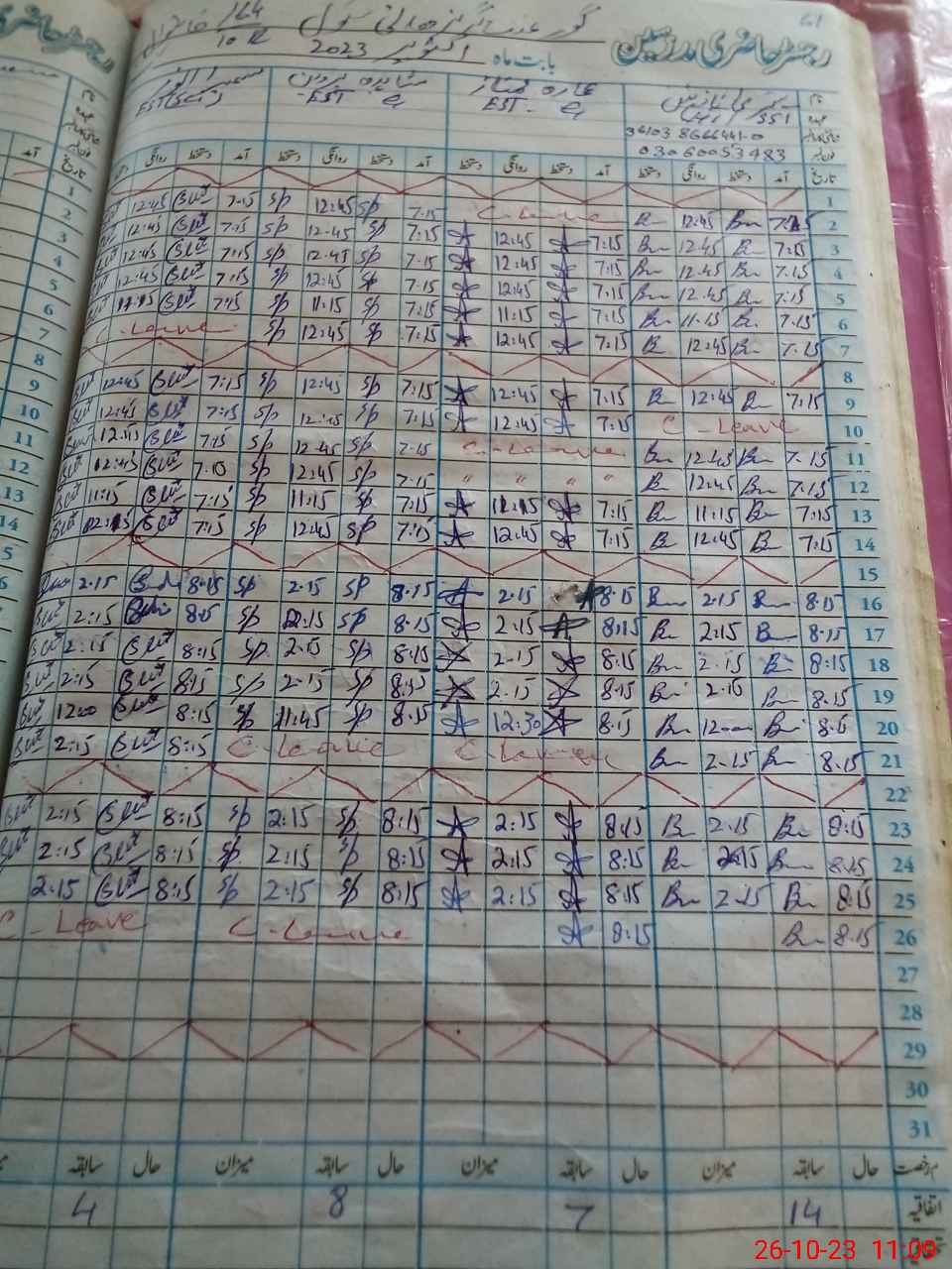 | Leave | Duty | Absent | Maternity | Medical | Ex- Pak |