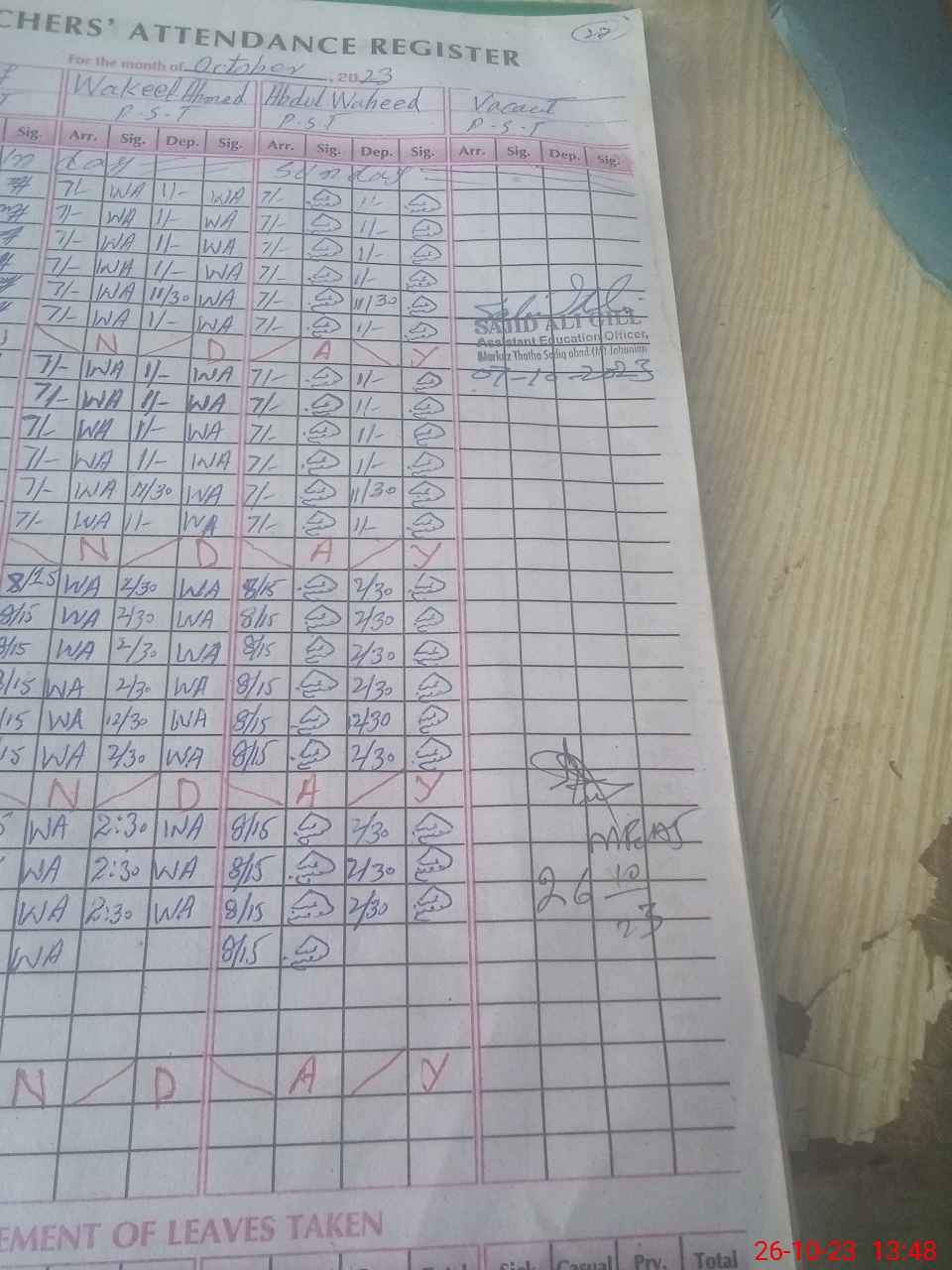 | Monitoring Date: 26-10-2023 | Start Time: 26-10-2023 01:08 PM | End Time: 26-10-2023 01:58 PM | Name of MEA: Ab**** Ja**** (S**** 20**** | |