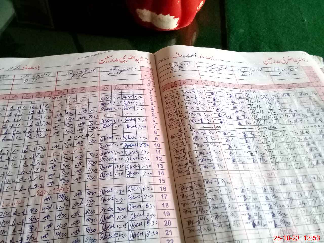 | Leave | Duty | Absent | Maternity | Medical | Ex- Pak |