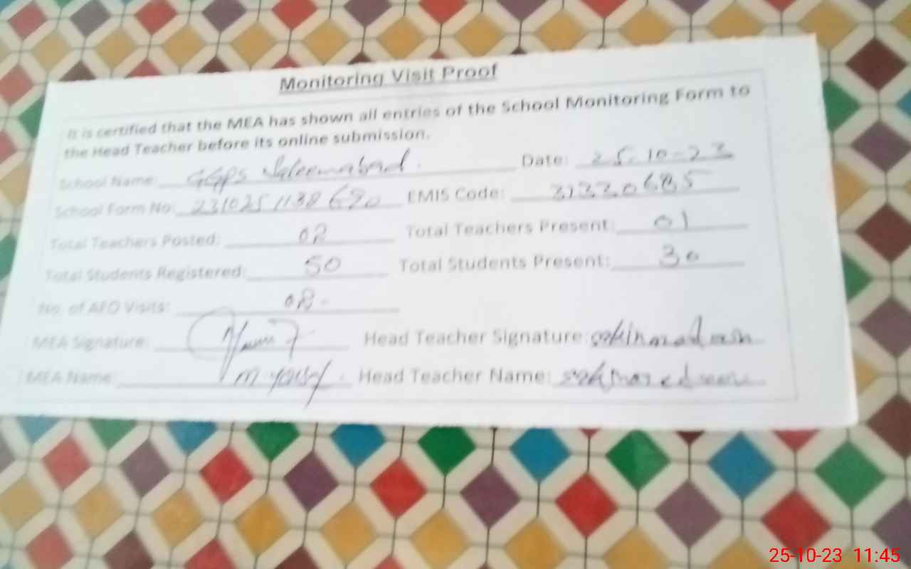 | EMIS Code: 31330685 | Name of School: GGPS SALEEM ABAD (ABAD PUR) | |||