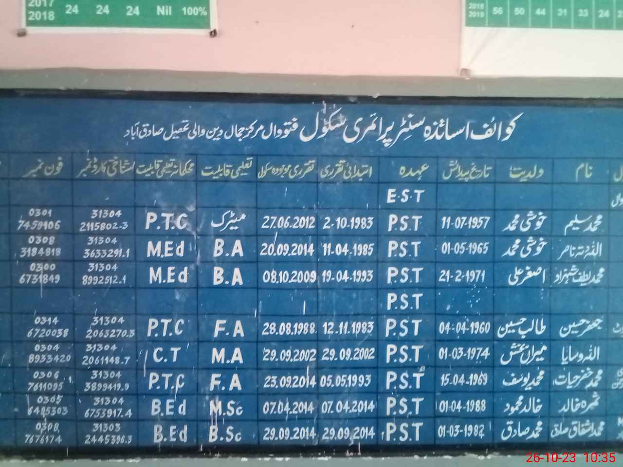 | District: RAHIMYAR KHAN | Tehsil: SADIQABAD | Markaz: JAMAL DIN WALI - MALE | Level: Primary | |