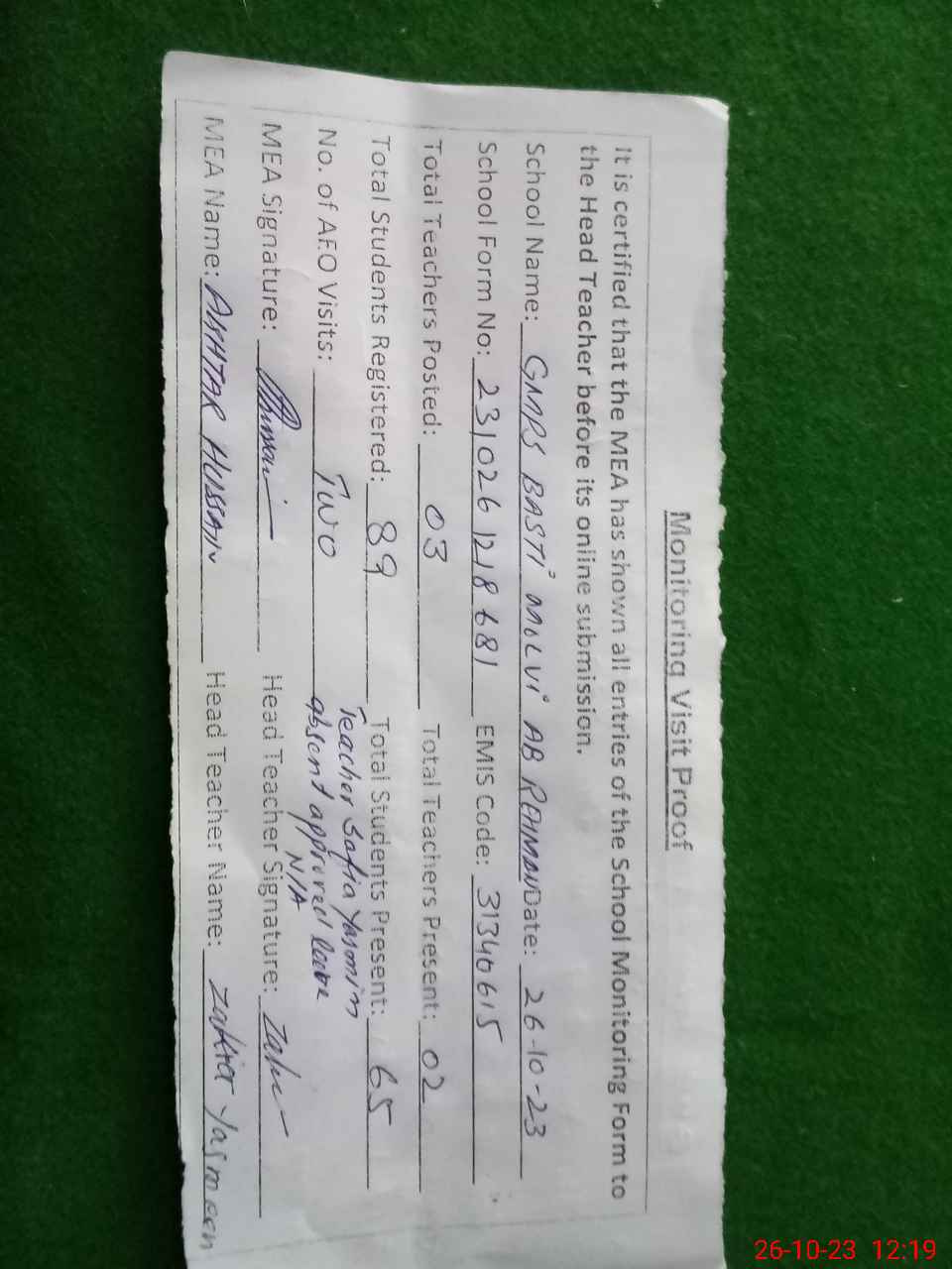 | EMIS Code: 31340615 | Name of School: GMPS BASTI MOLVI ABDUL REHMAN | |||