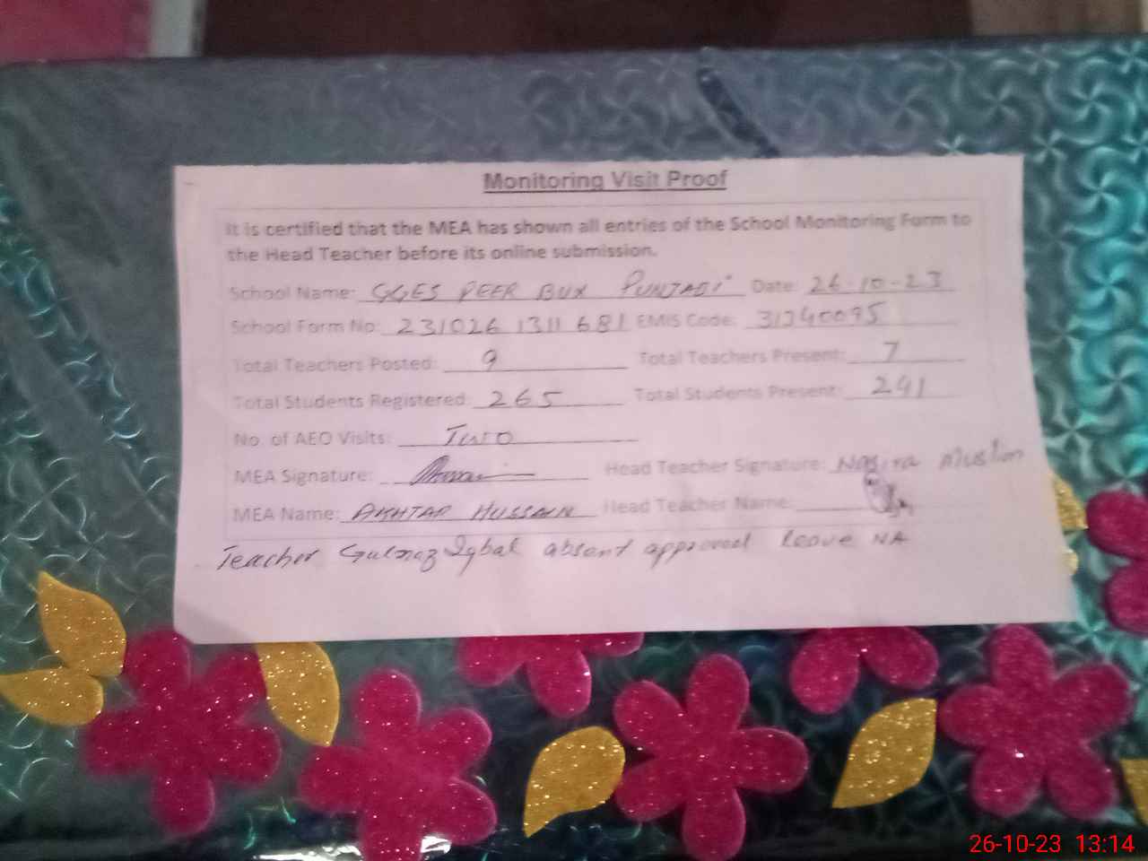 | EMIS Code: 31340095 | Name of School: GGES PEER BUKHASH PUNJABI | |||