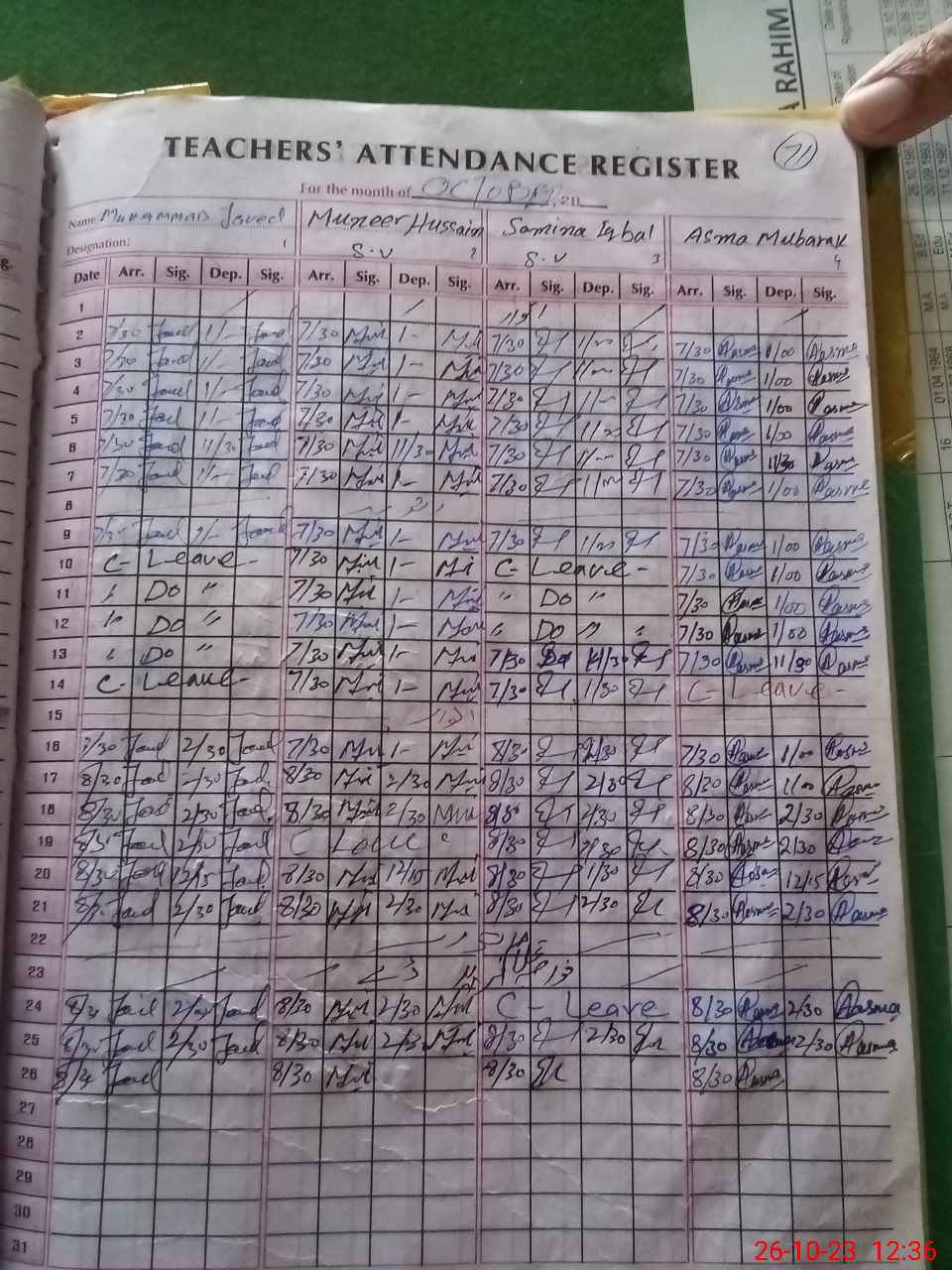 | CNIC | Full Name | Designation | R/C | Absence During Last Calender Month |