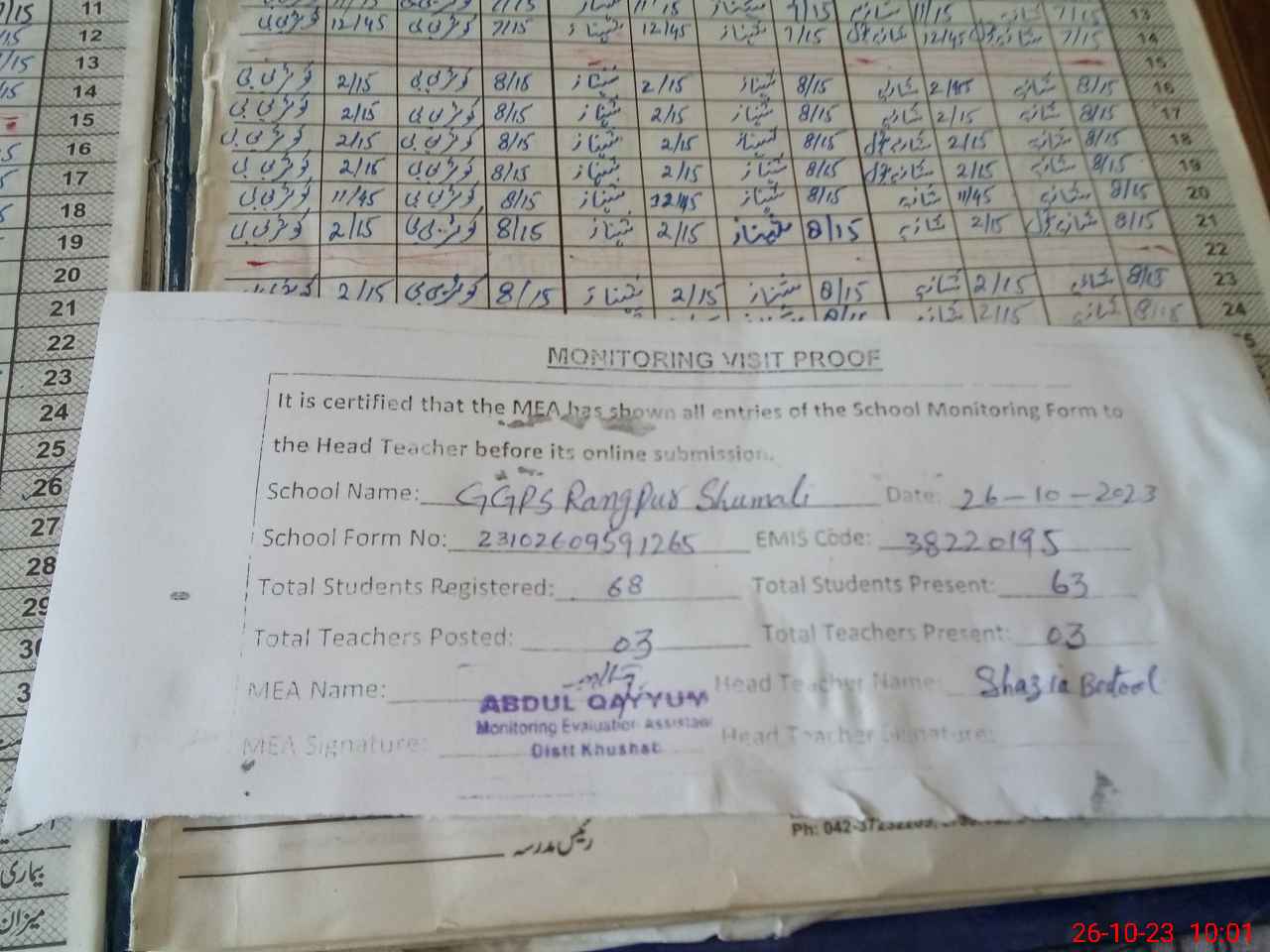 | EMIS Code: 38220195 | Name of School: GGPS RANG PUR SHUMALI | |||