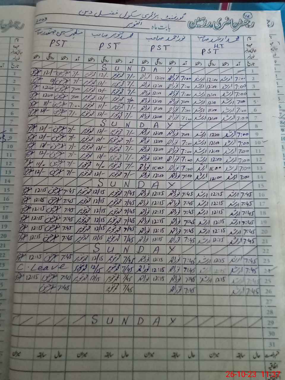 | Name: MU**** AR**** Designation: (School Headmaster's/Headmistress's) PST( ARTS) Phone/Cell Number: 03**** |
