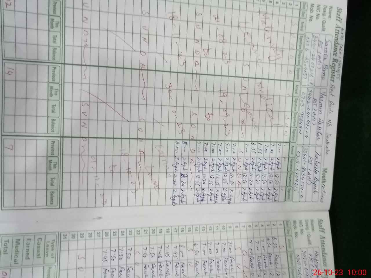 | 34**** | AB**** RA**** SO**** | JC | 30 | 0 | 0 | 0 | 30 | 0 | 0 | 0 | 0 | Absent (Un-Authorized) | |