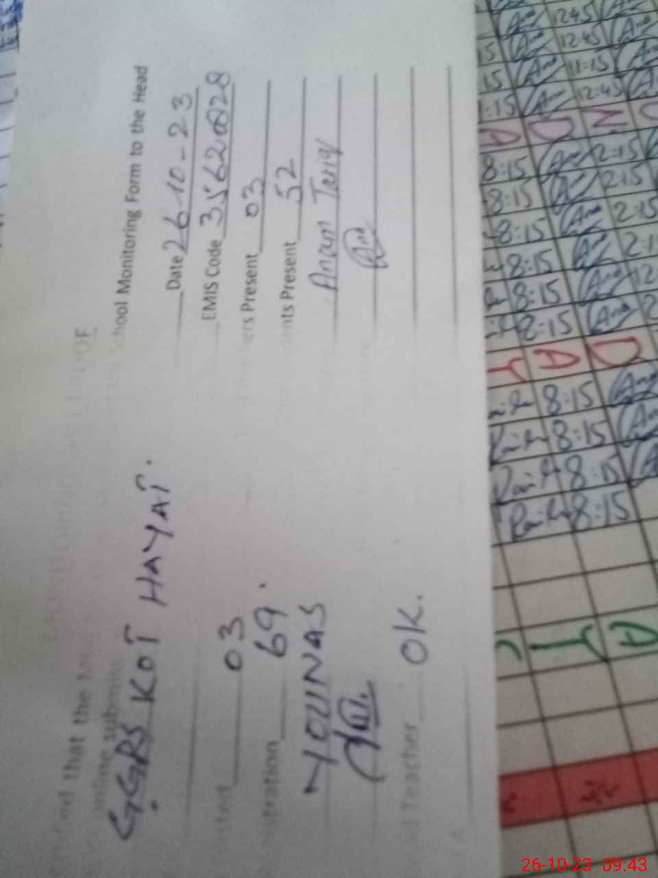 | EMIS Code: 35620828 | Name of School: GGPS KOT HAYAT KHAN | |||