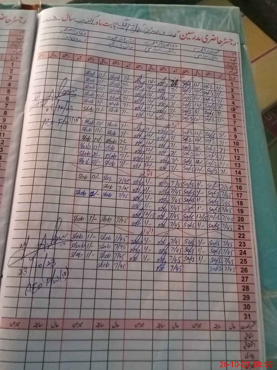 | CNIC | Full Name | Designation | R/C | Absence During Last Calender Month |