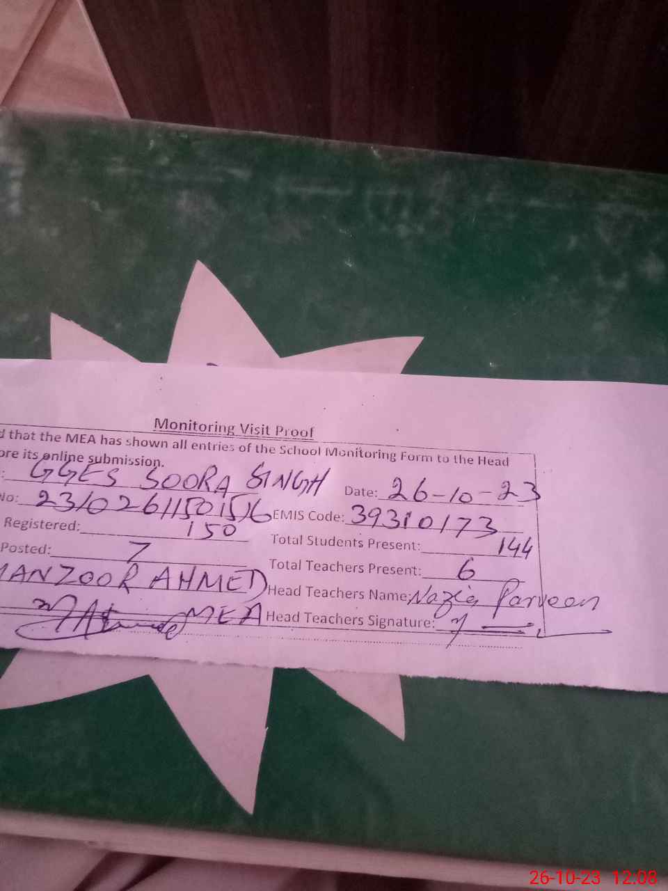 | EMIS Code: 39310173 | Name of School: GGES SOORA SINGH | |||