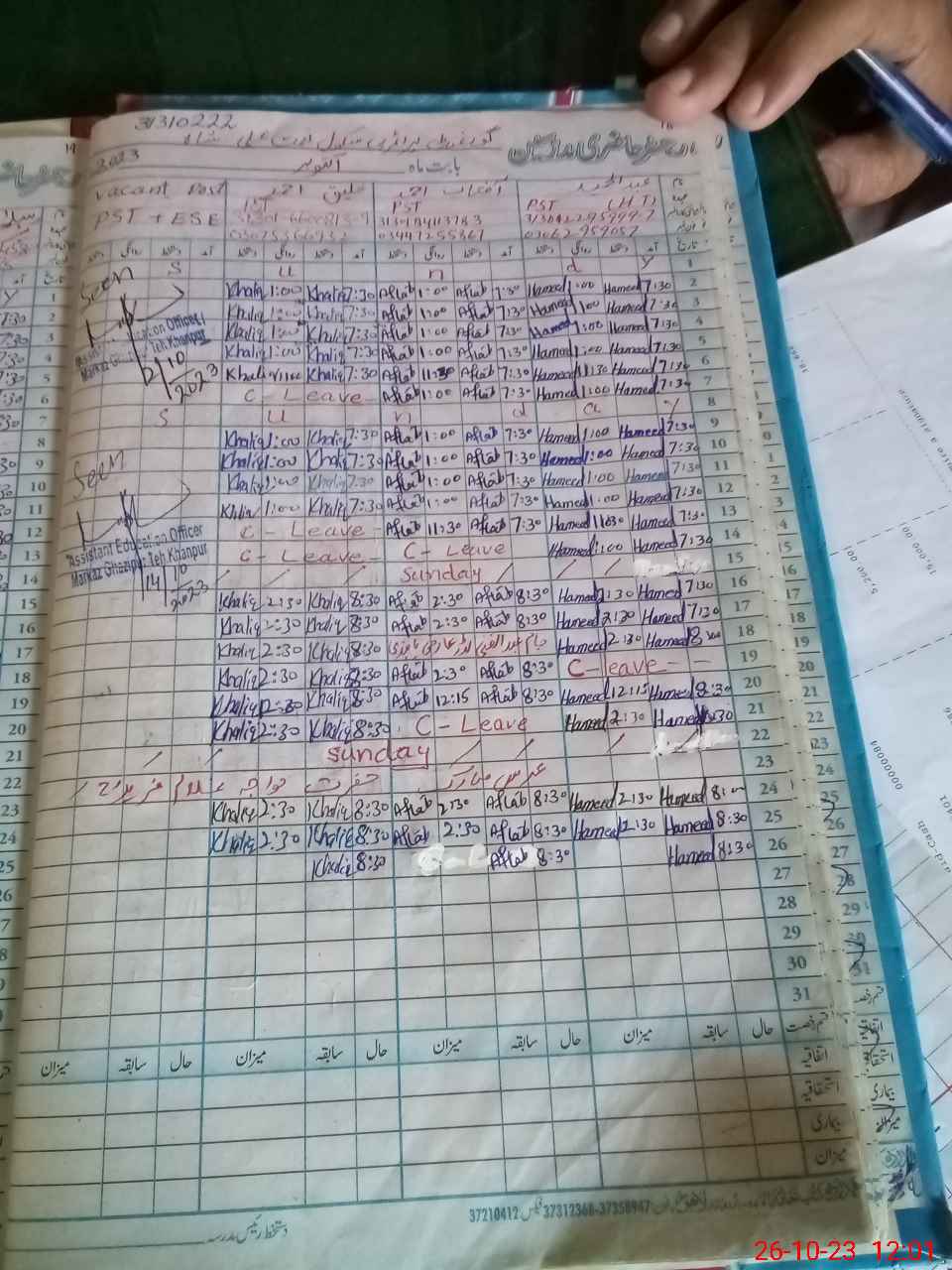 | Name: Ab**** Ha**** Designation: (School Headmaster's/Headmistress's) PST Phone/Cell Number: 03**** |