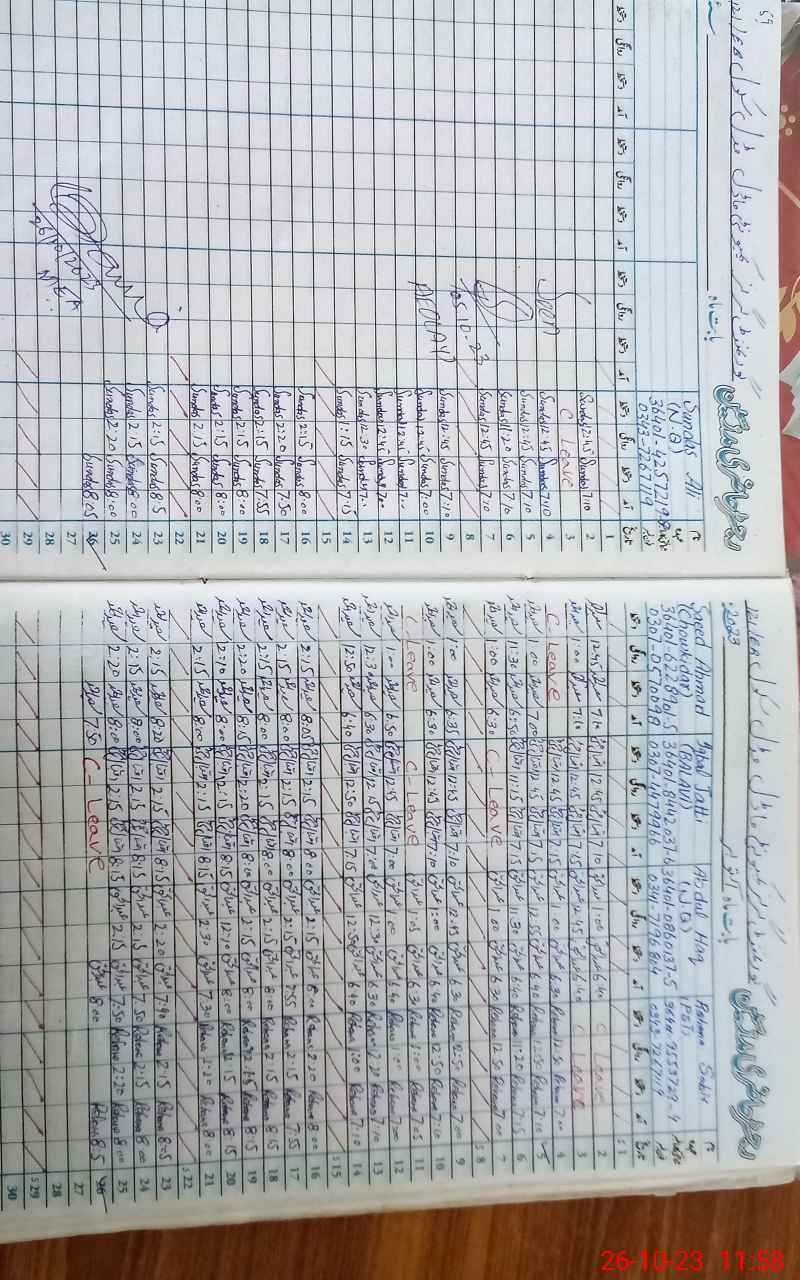 | CNIC | Full Name | Designation | R/C | Absence During Last Calender Month |