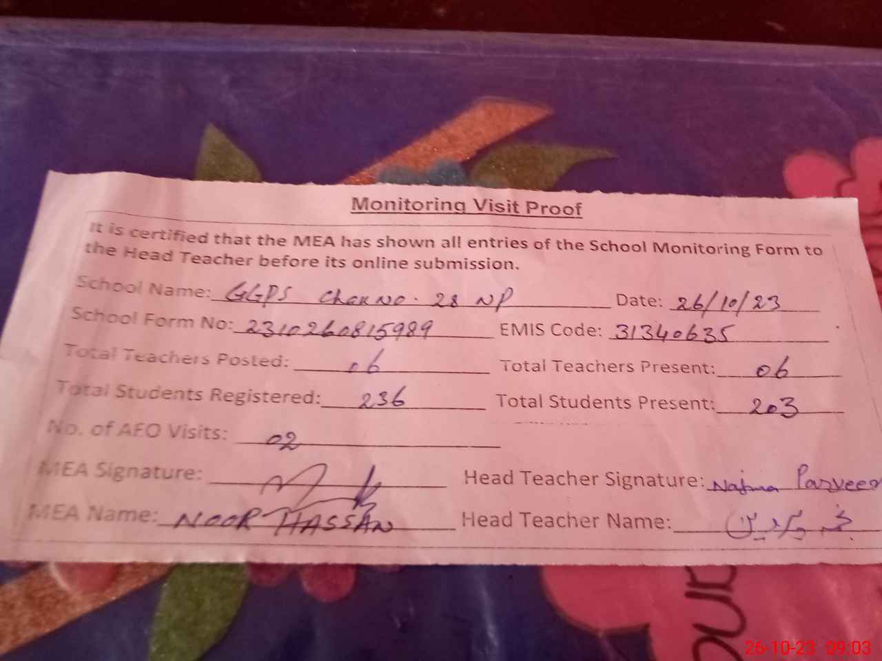 | EMIS Code: 31340635 | Name of School: GGPS 28/NP SUNJER PUR | |||