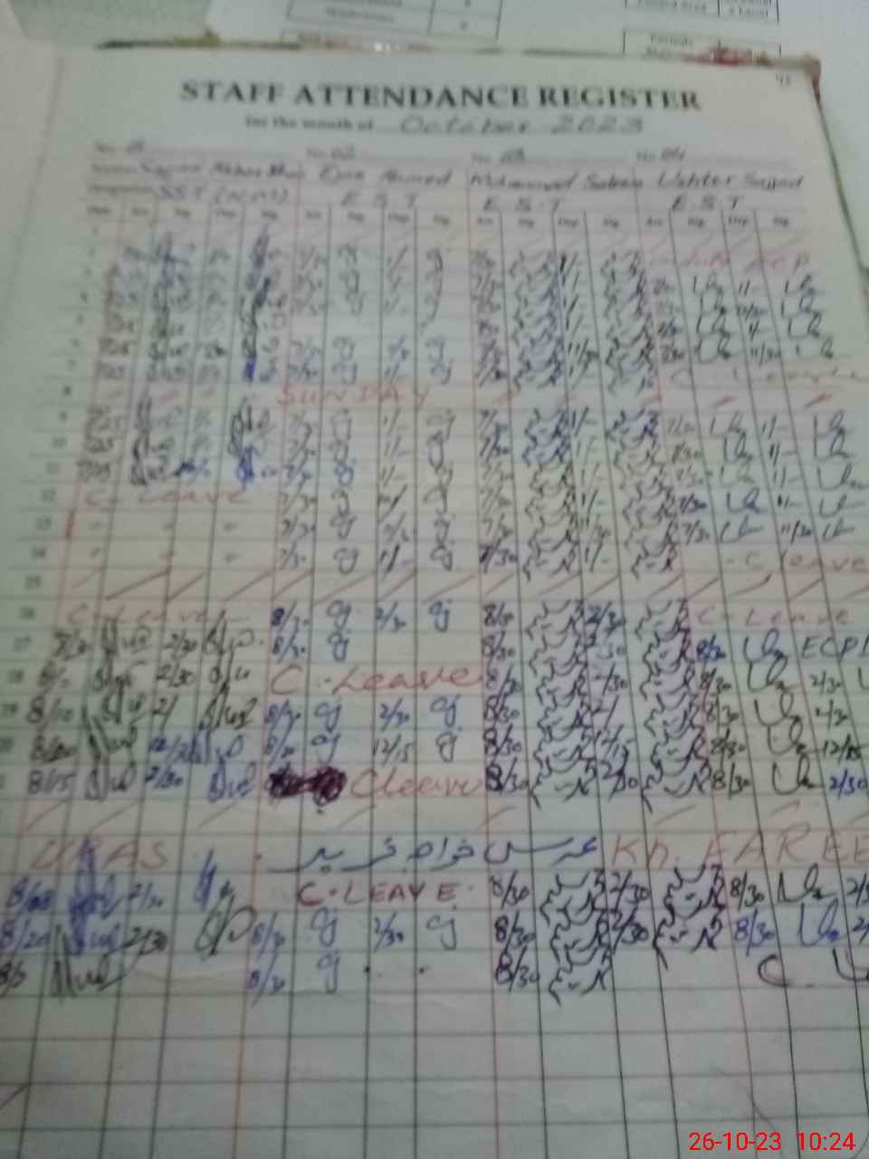 | CNIC | Full Name | Designation | R/C | Absence During Last Calender Month |