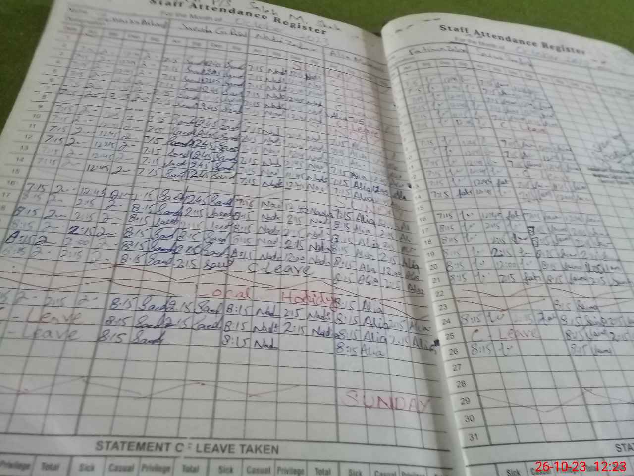 | Leave | Duty | Absent | Maternity | Medical | Ex- Pak |