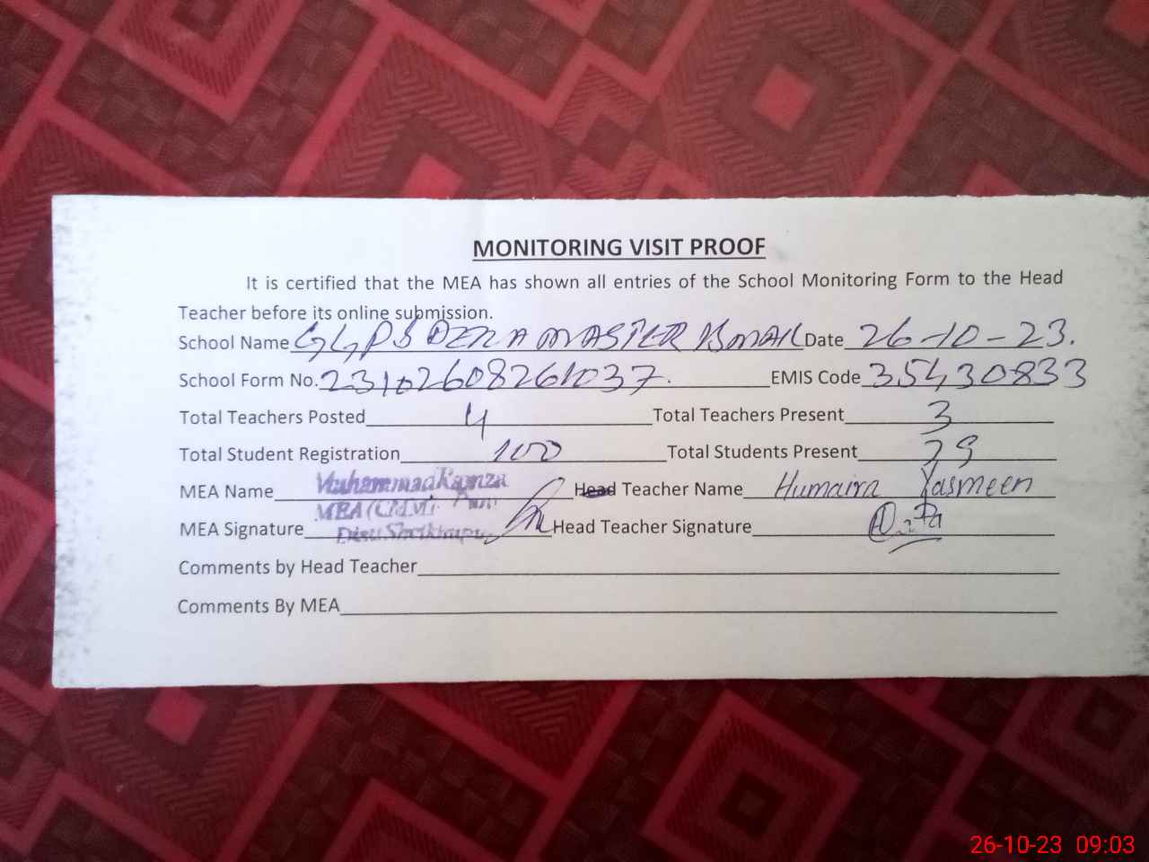 | EMIS Code: 35430833 | Name of School: GGPS DERA MASTER ISMAIL | |||