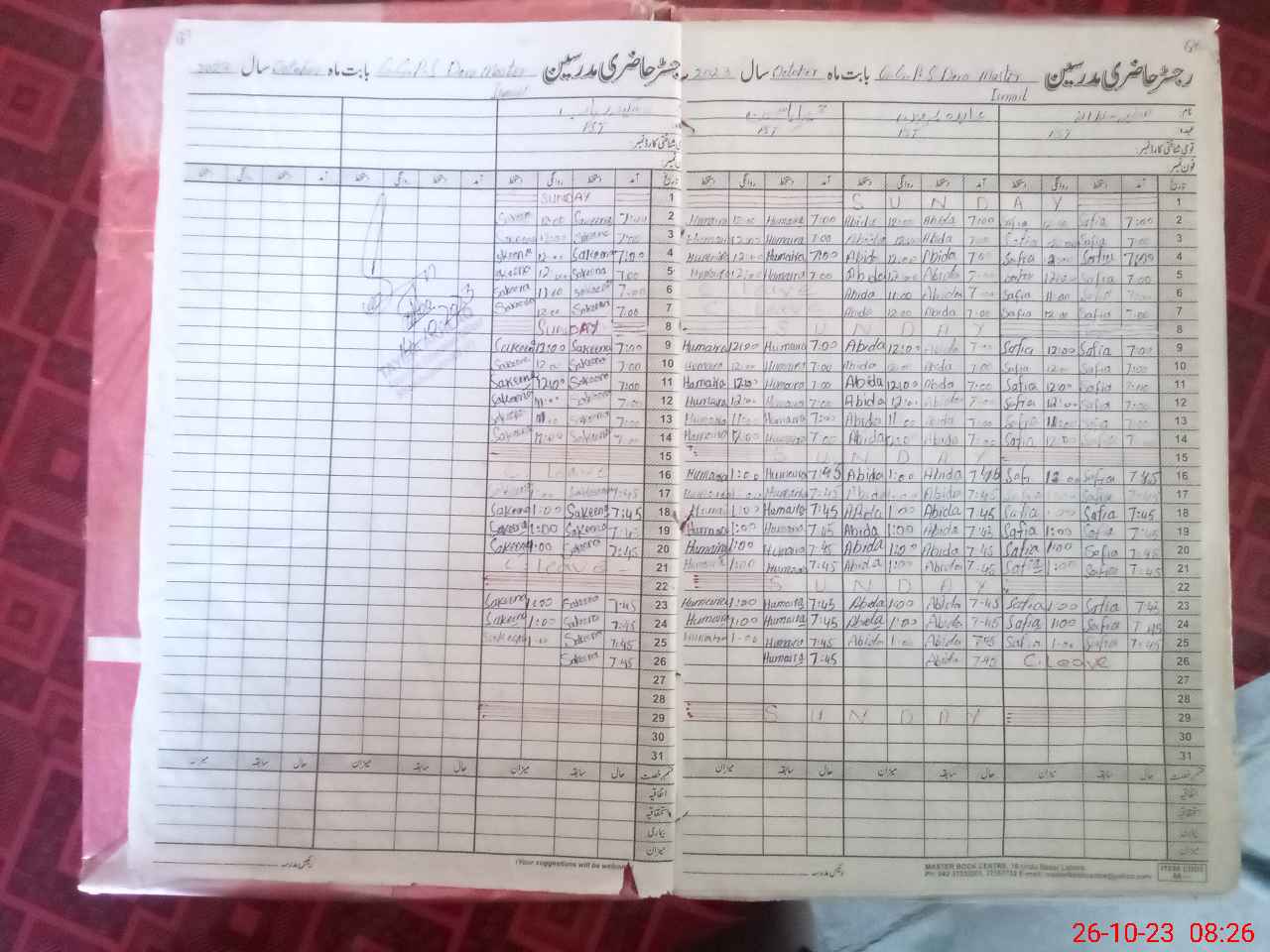 | 35**** | Sa**** Su**** | 1 | 1 | 0 | 0 | 0 | 0 | 0 | 0 | 0 | 1 | Absent (Un-Authorized) | |