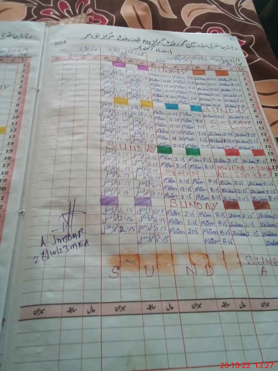| CNIC | Full Name | Designation | R/C | Absence During Last Calender Month |