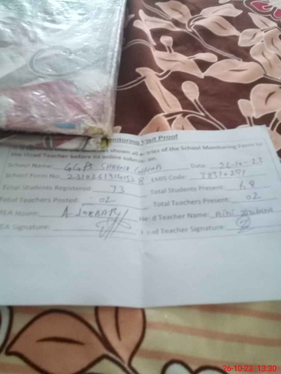 | Attendance Register | Head Teacher | MEA with School | Visit Proof |