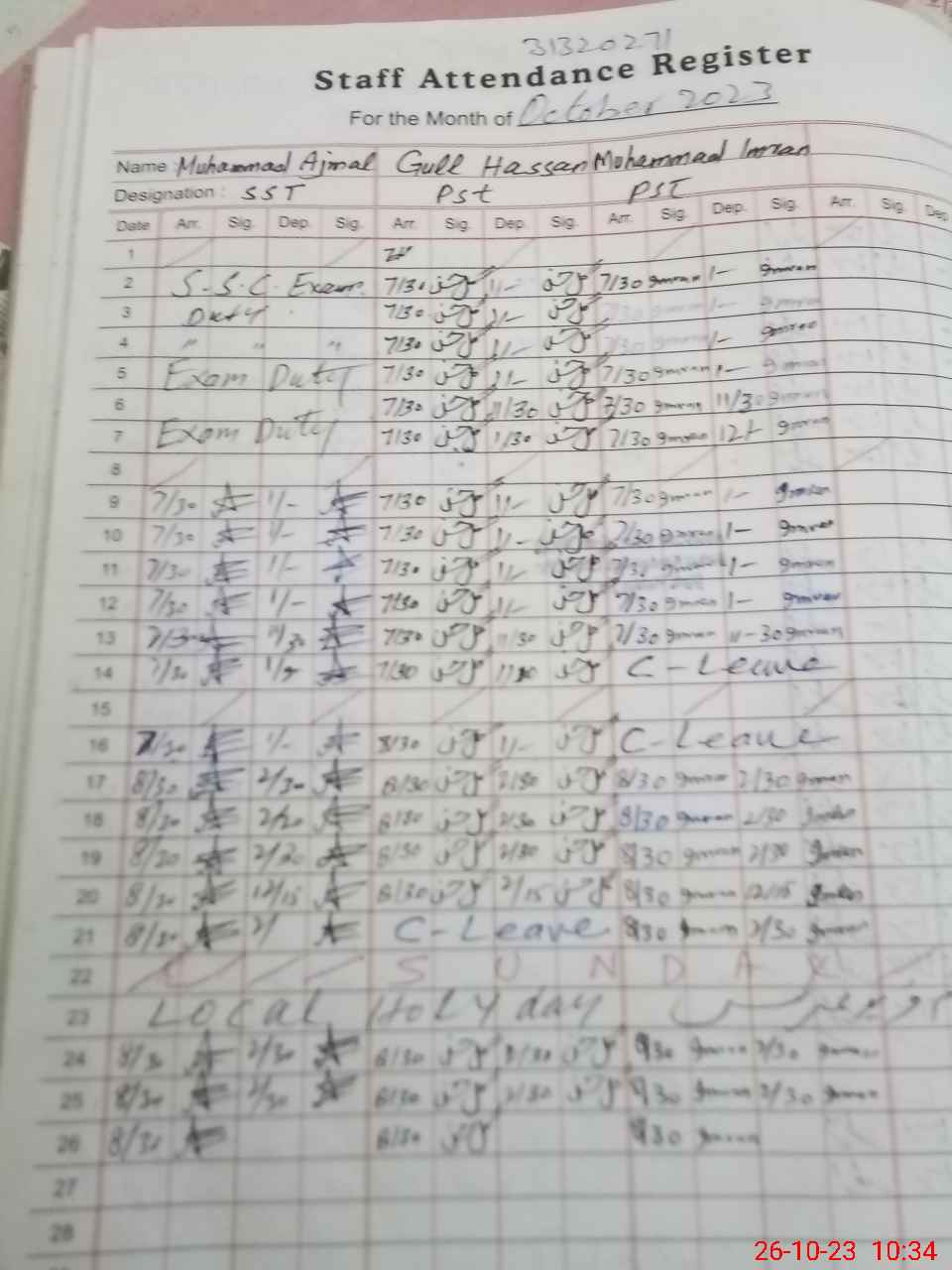| CNIC | Full Name | Designation | R/C | Absence During Last Calender Month |