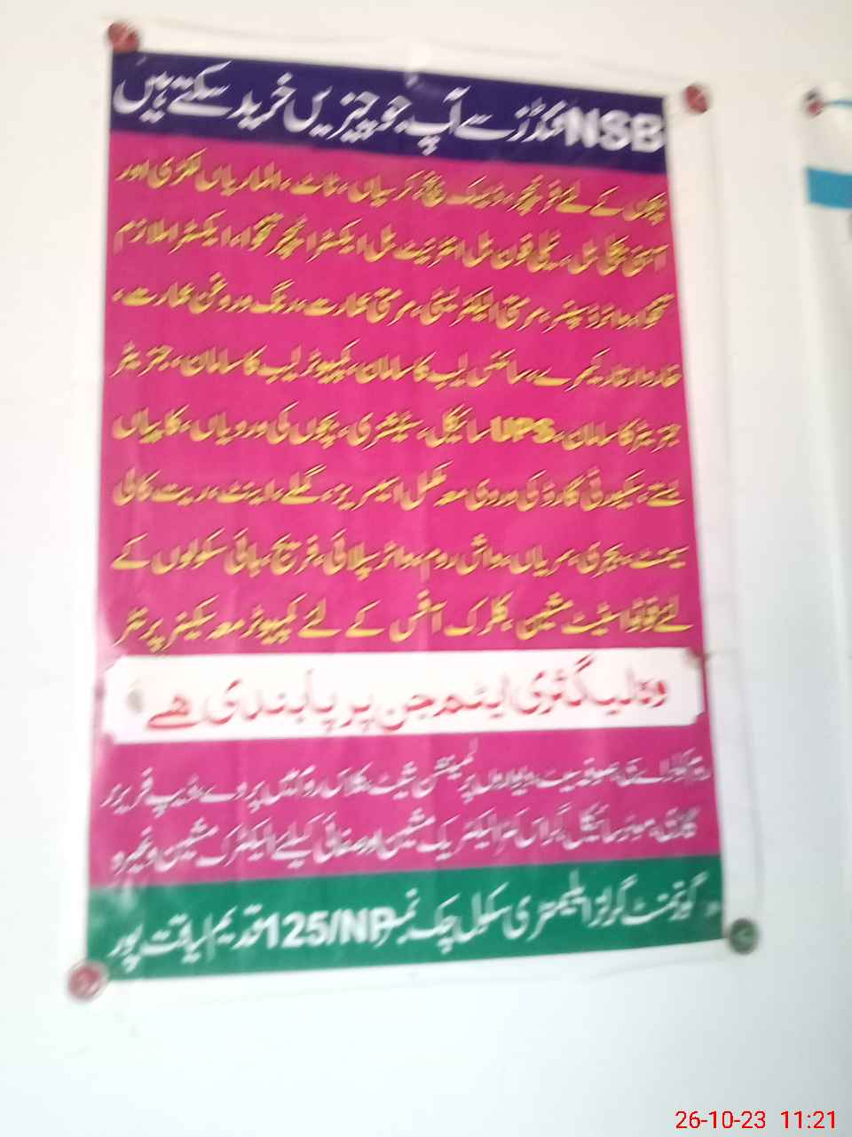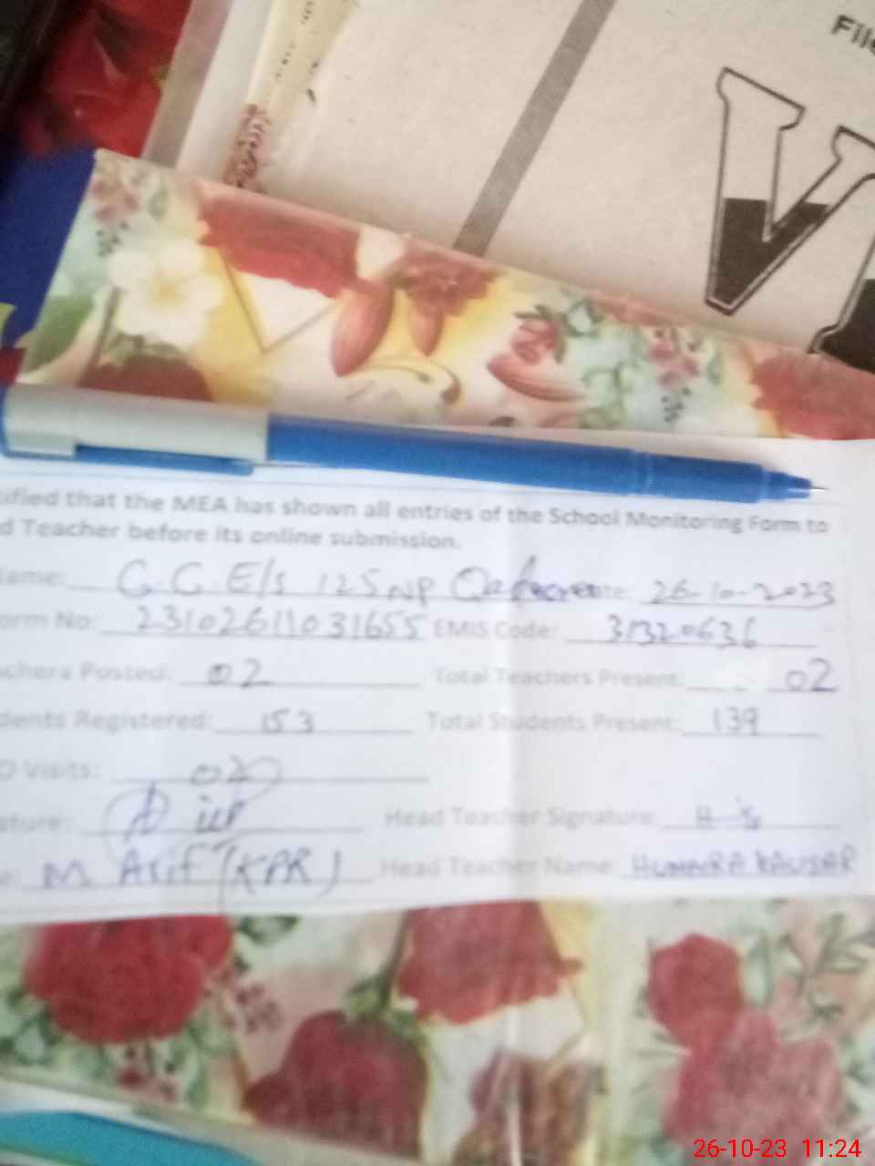 | EMIS Code: 31320636 | Name of School: GGES CHAK 125/NP QADEEM | |||