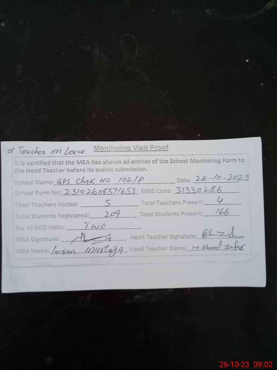 | EMIS Code: 31330286 | Name of School: GPS CHAK 102/P | |||