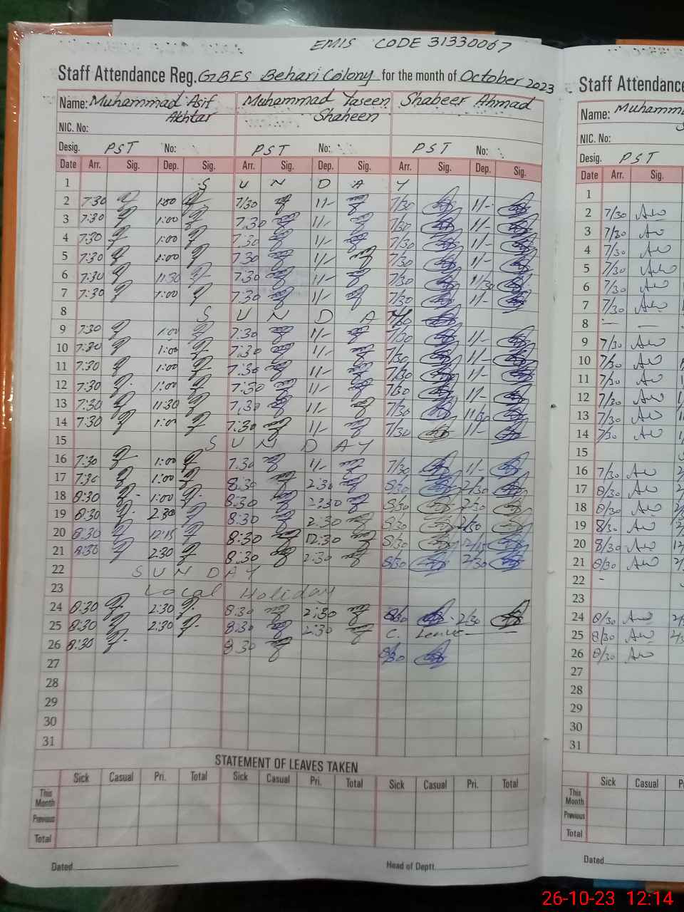 | Name: Mu**** Hu**** Designation: (School Headmaster's/Headmistress's) S.S.T.(arts} Phone/Cell Number: 03**** |