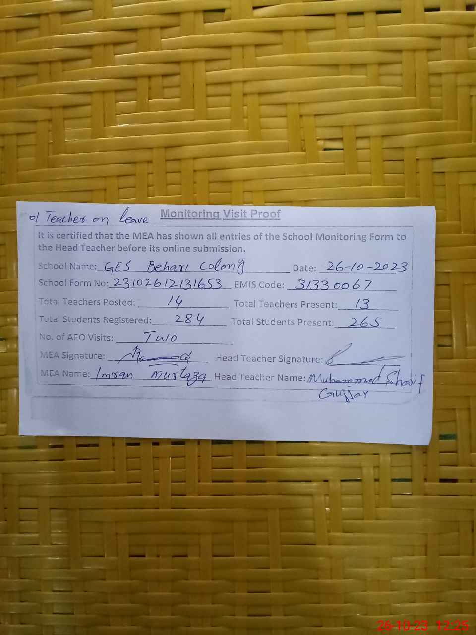 | EMIS Code: 31330067 | Name of School: GES BEHARI COLONY | |||