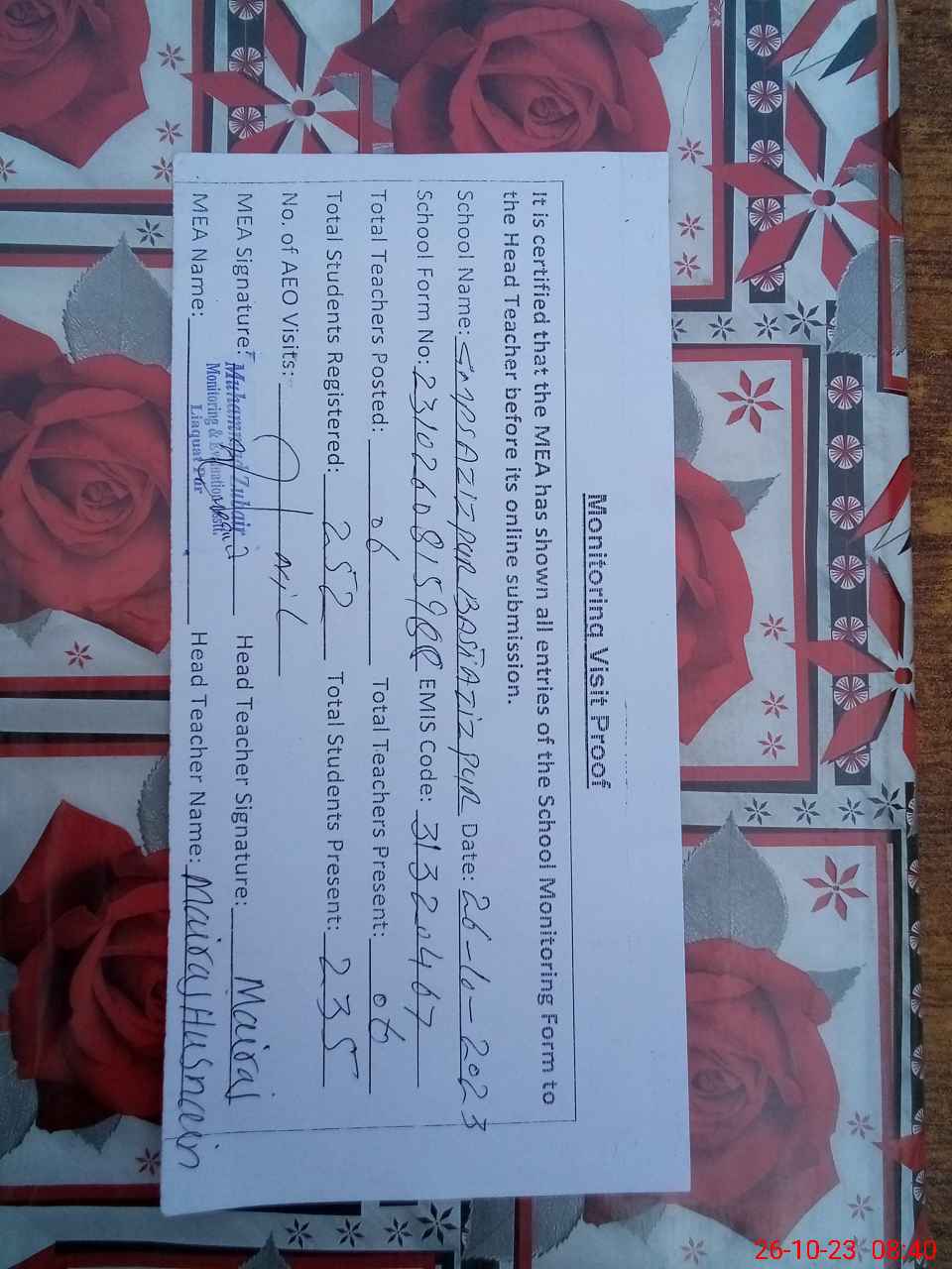 | EMIS Code: 31320467 | Name of School: GMPS AZIZ PUR BASTI AZIZ PUR | |||