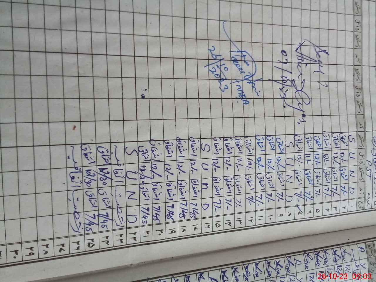 | Monitoring Date: 26-10-2023 | Start Time: 26-10-2023 08:46 AM | End Time: 26-10-2023 09:07 AM | Name of MEA: HA**** GH**** MO**** UDDI**** | |