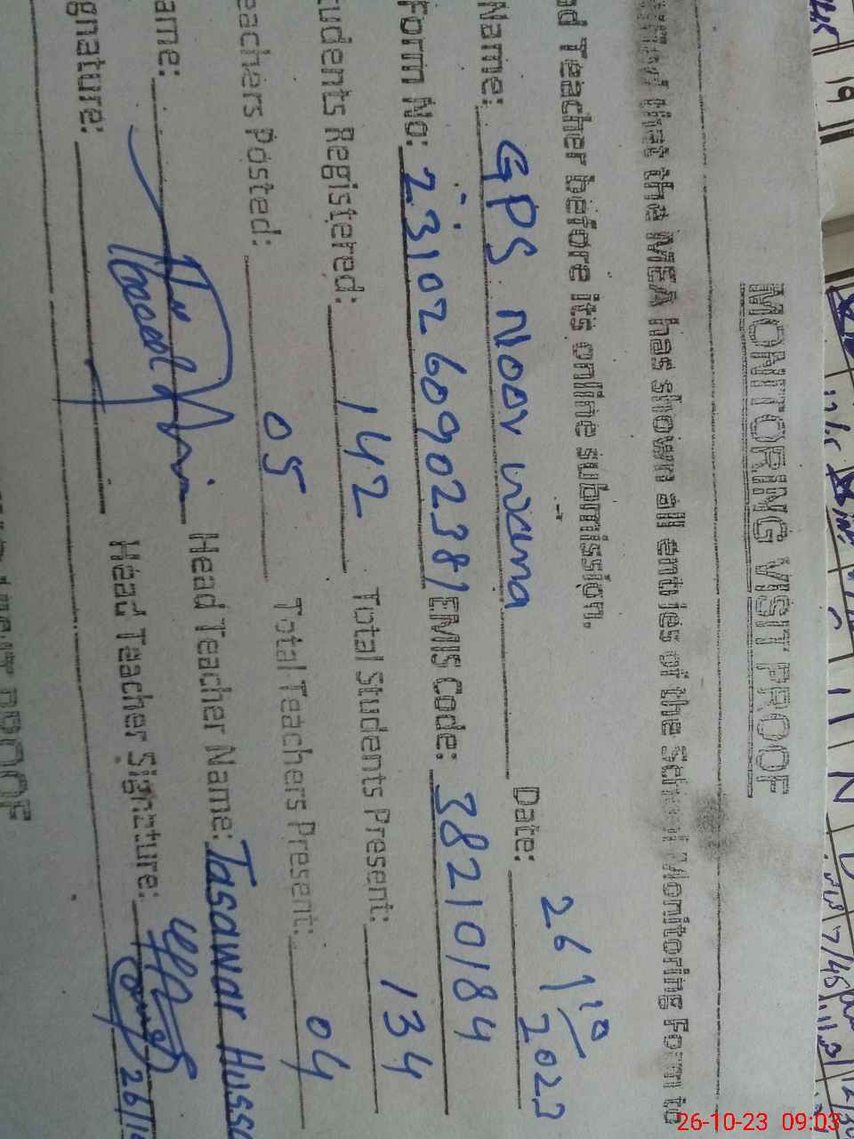 | EMIS Code: 38210184 | Name of School: GPS NOOR WANA | |||