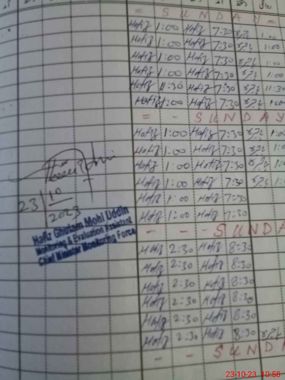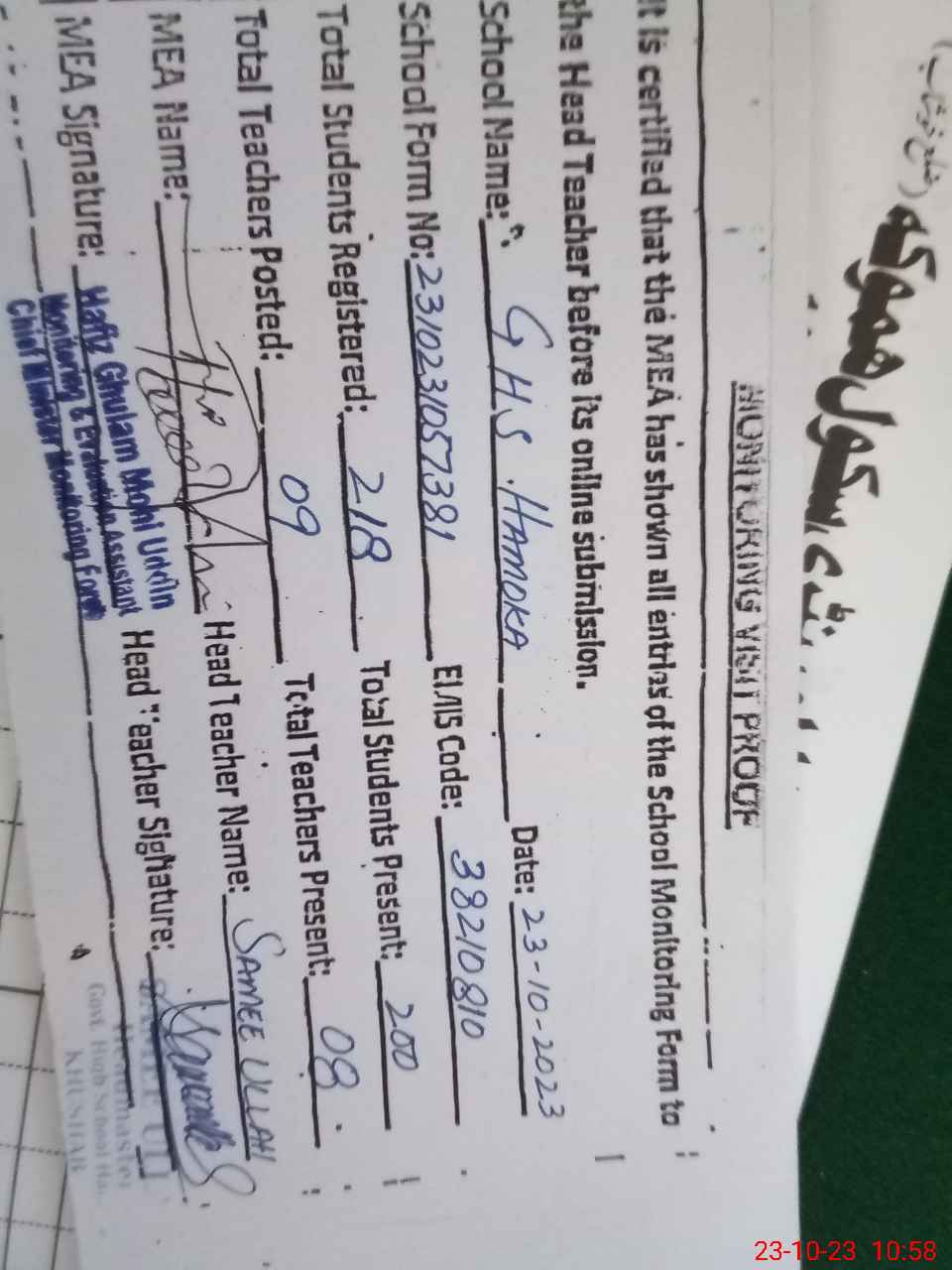 | Name: Mu**** Ra**** Designation: (School Headmaster's/Headmistress's) HEADMASTER Phone/Cell Number: 03**** |