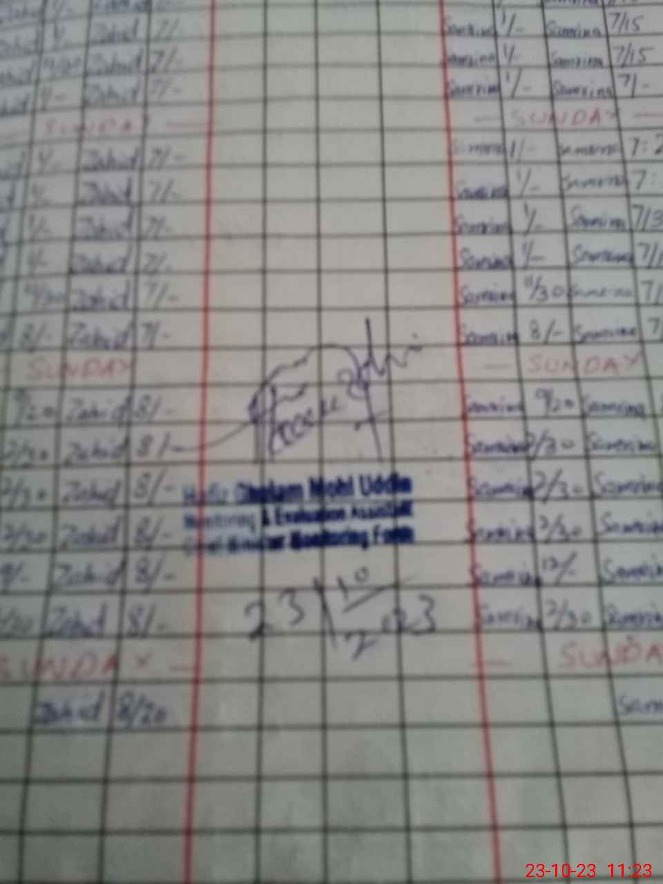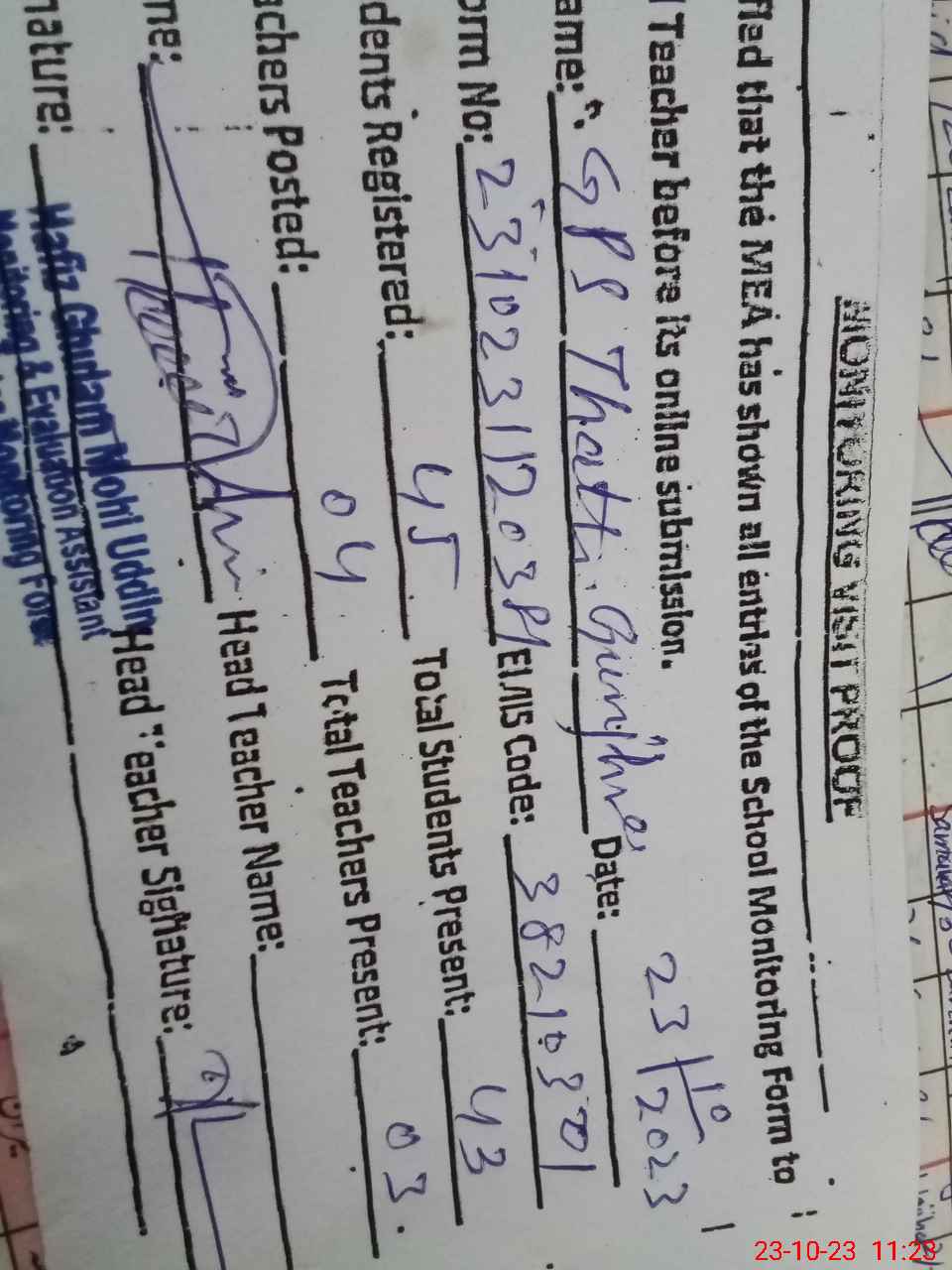 | Monitoring Date: 23-10-2023 | Start Time: 23-10-2023 11:06 AM | End Time: 23-10-2023 11:37 AM | Name of MEA: HA**** GH**** MO**** UDDI**** | |