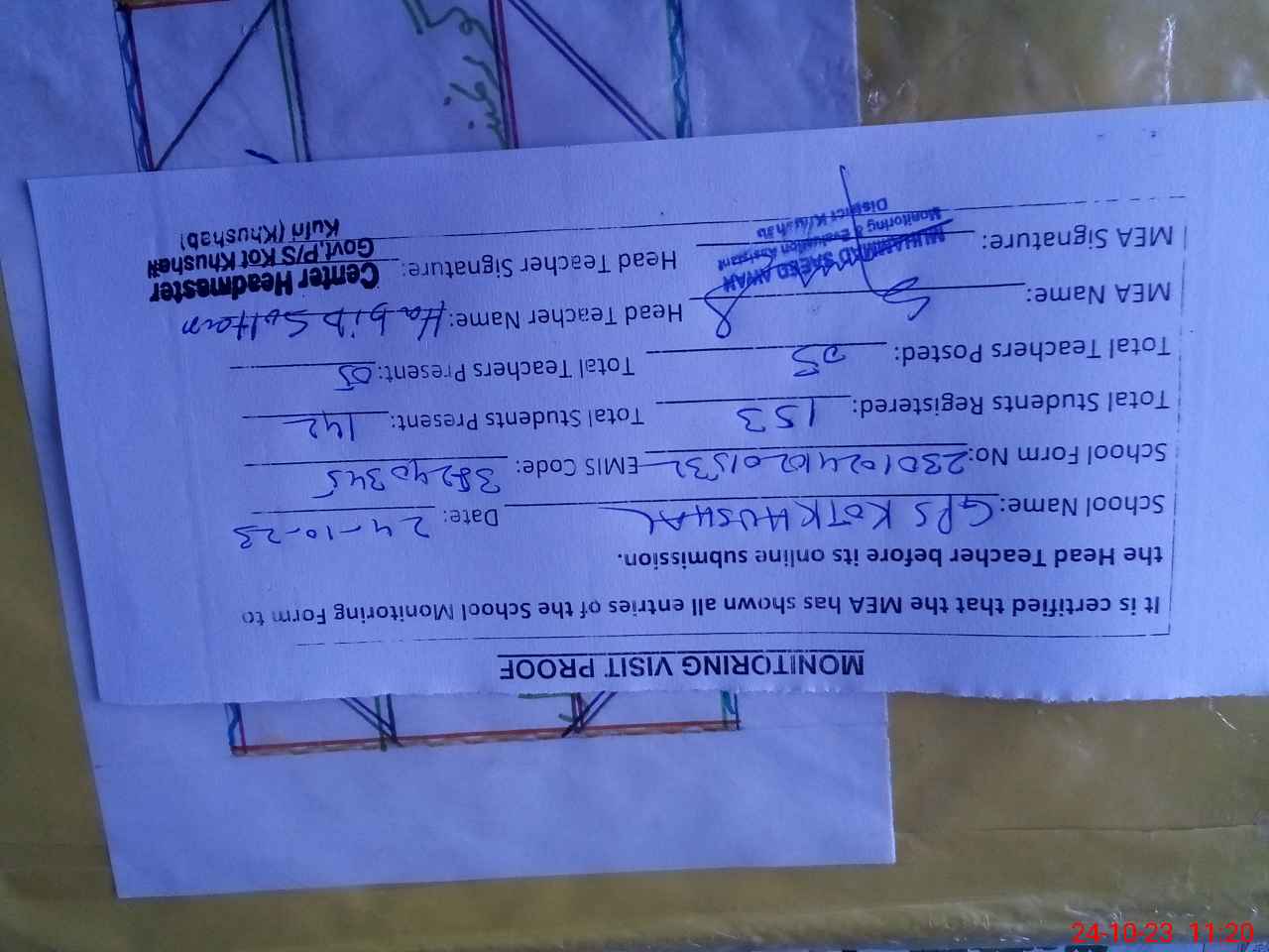| EMIS Code: 38240345 | Name of School: GPS KOT KHUSHAL | |||