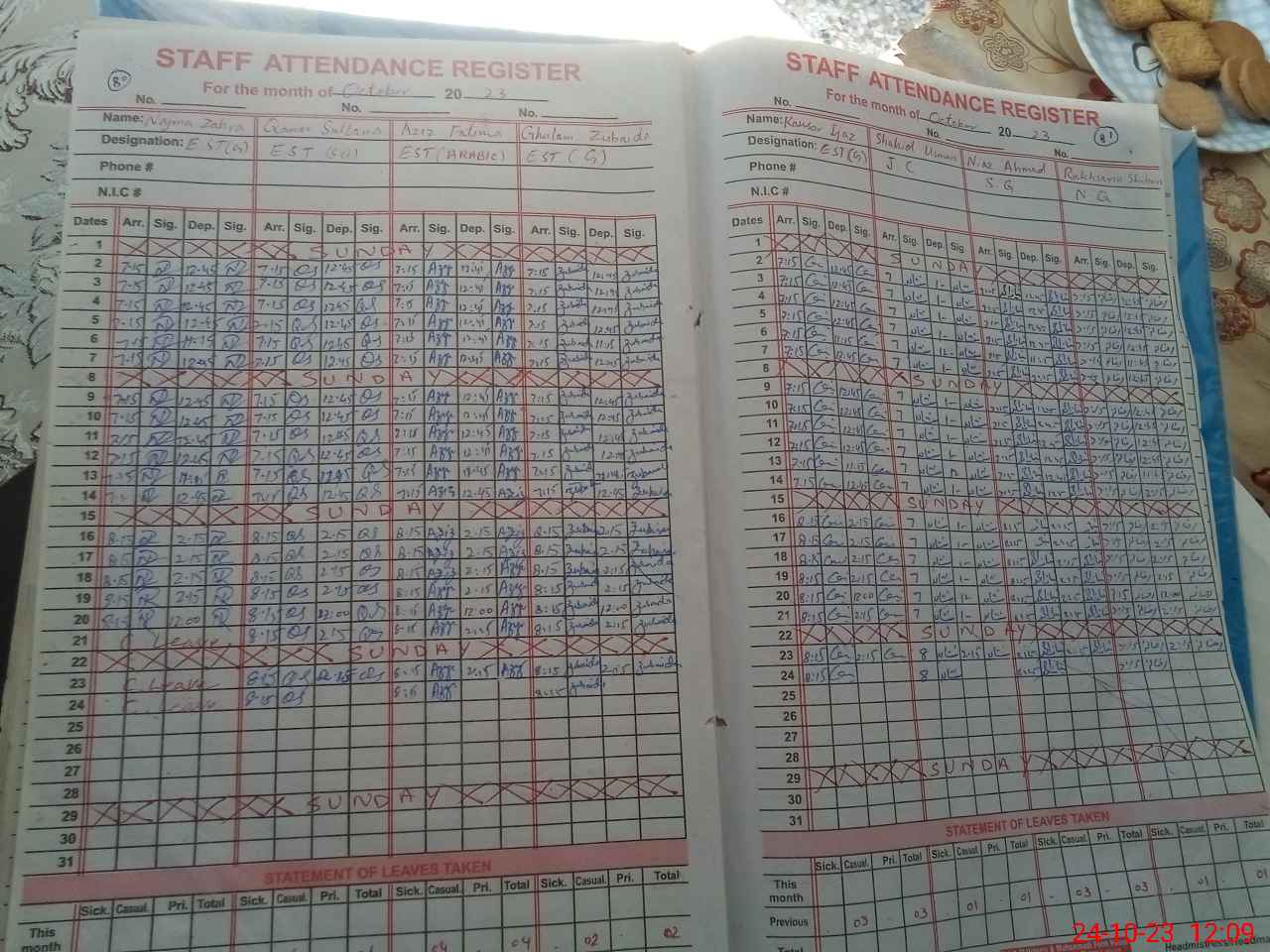 | CNIC | Full Name | Designation | R/C | Absence During Last Calender Month |