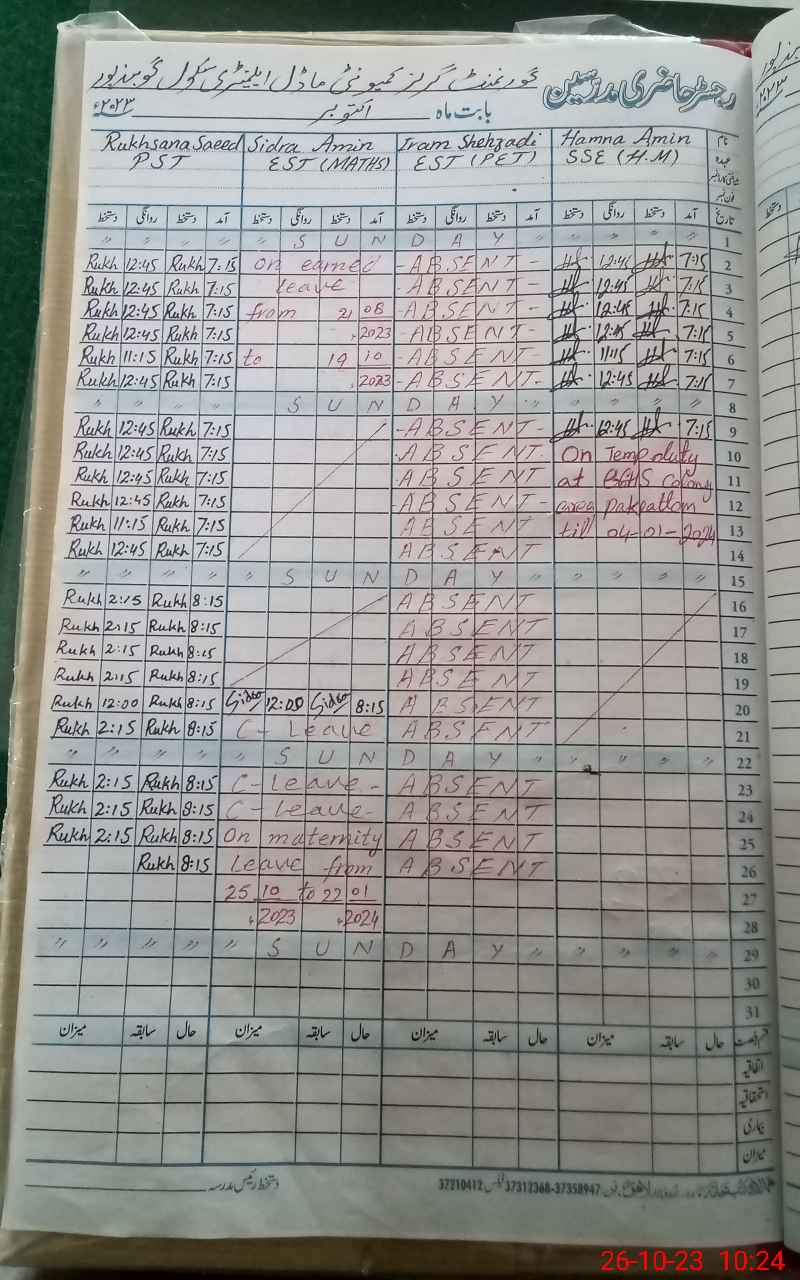 | 36**** | Ir**** Sh**** | 1 | 0 | 0 | 30 | 0 | 0 | 0 | 0 | 0 | 0 | Absent (Un-Authorized) | |
