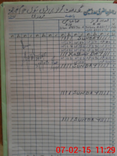| CNIC | Full Name | Designation | R/C | Absence During Last Calender Month |