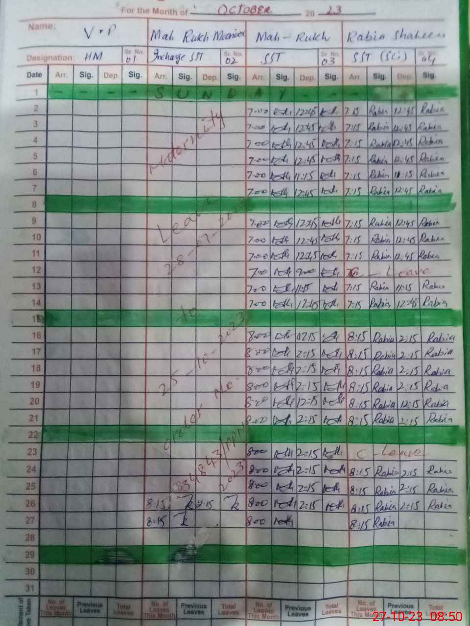 | 36**** | Sh**** Ka**** | 1 | 27 | 0 | 0 | 27 | 0 | 0 | 0 | 0 | 0 | Maternity | |