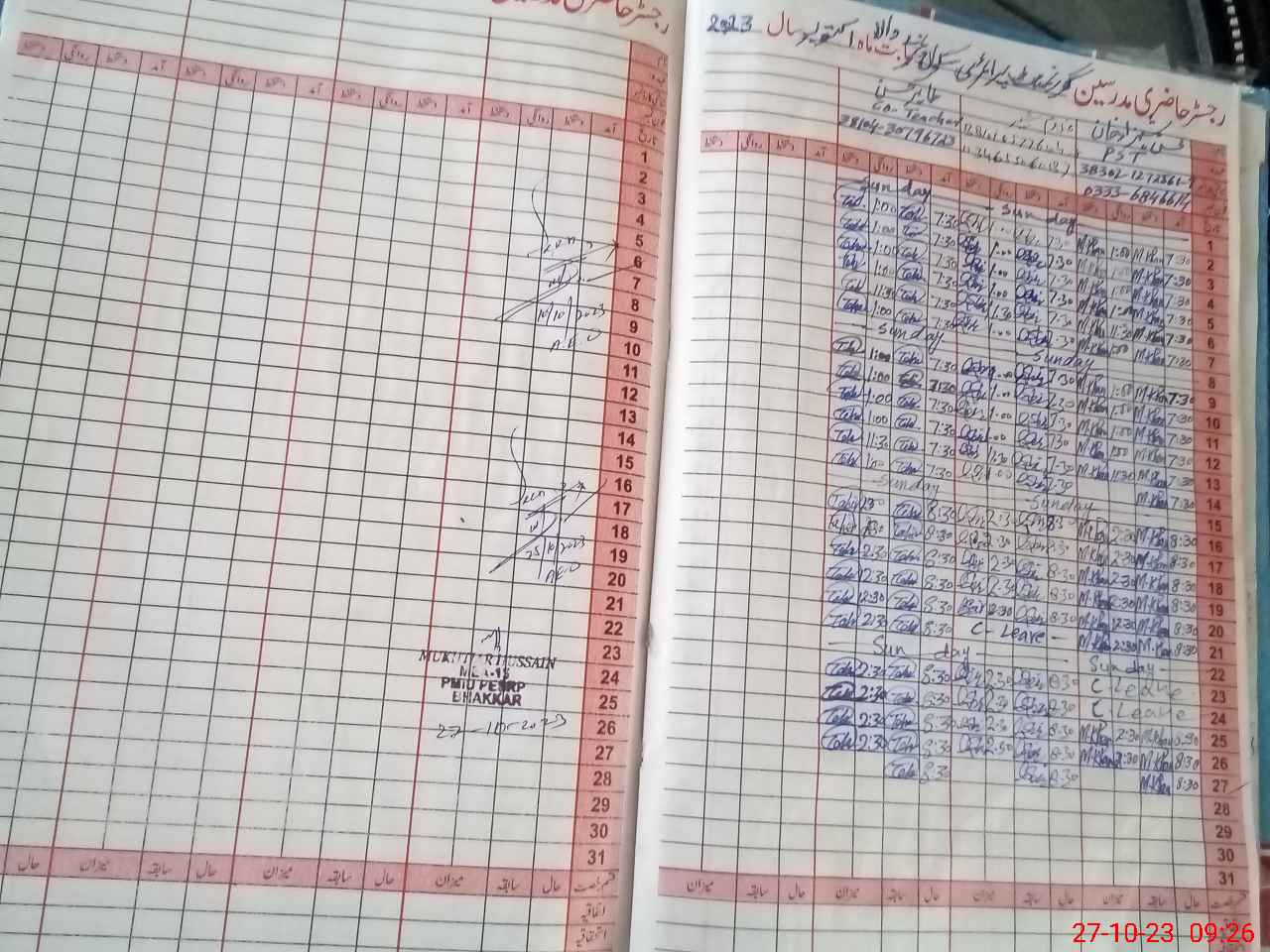 | Name: Qa**** ULHa**** Designation: (School Headmaster's/Headmistress's) PTC/JV Phone/Cell Number: 03**** |