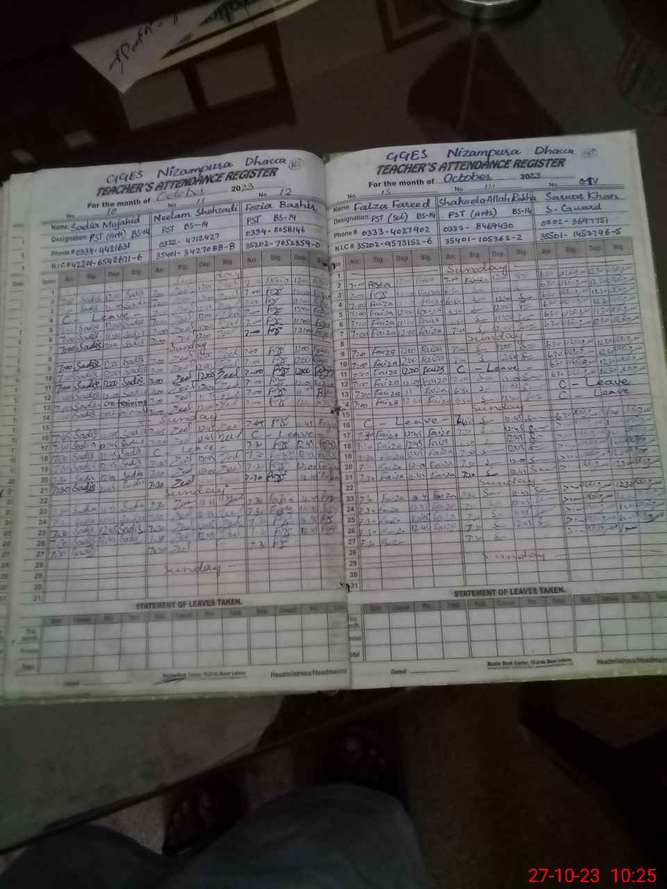 | CNIC | Full Name | Designation | R/C | Absence During Last Calender Month |