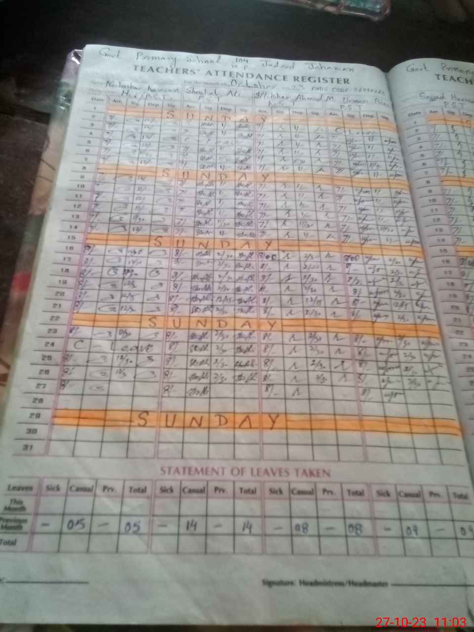 | Name: MU**** RA**** Designation: (School Headmaster's/Headmistress's) PST Phone/Cell Number: 03**** |