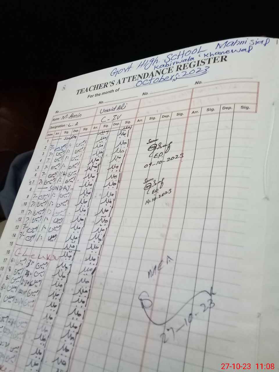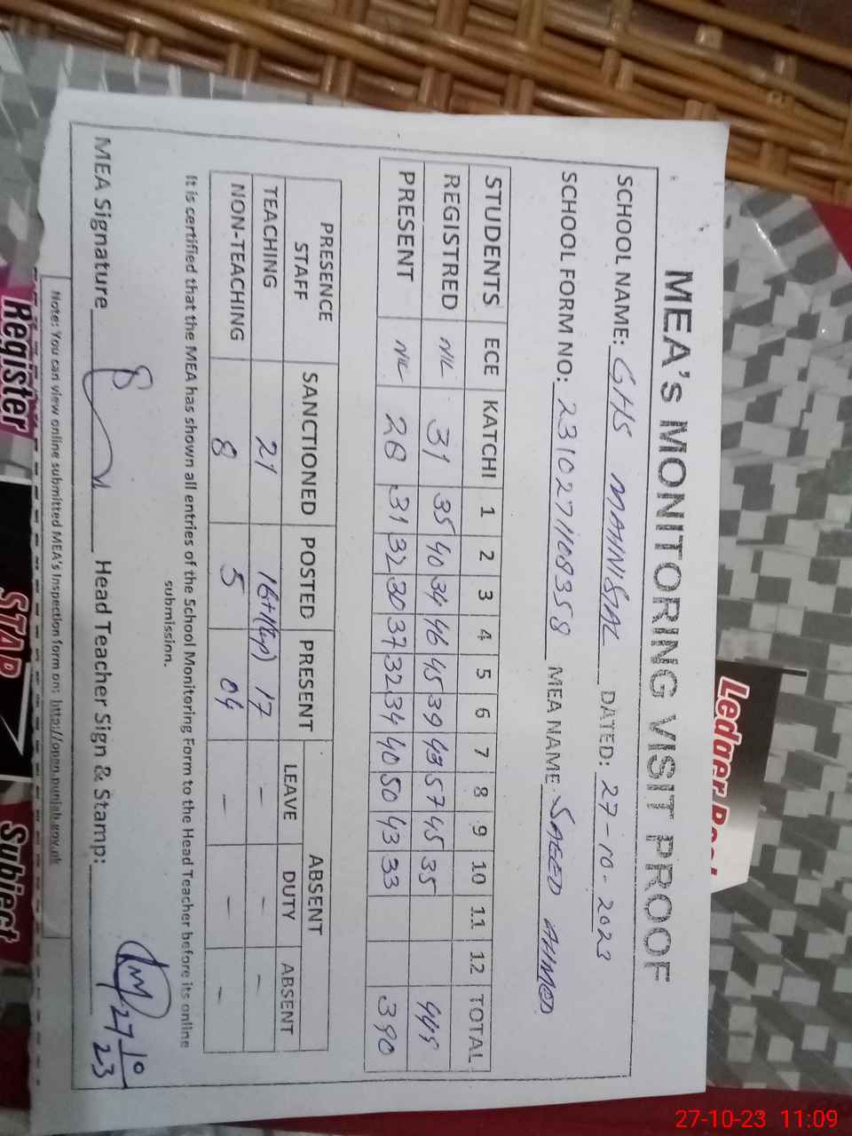 | Attendance Register | Head Teacher | MEA with School | Visit Proof |