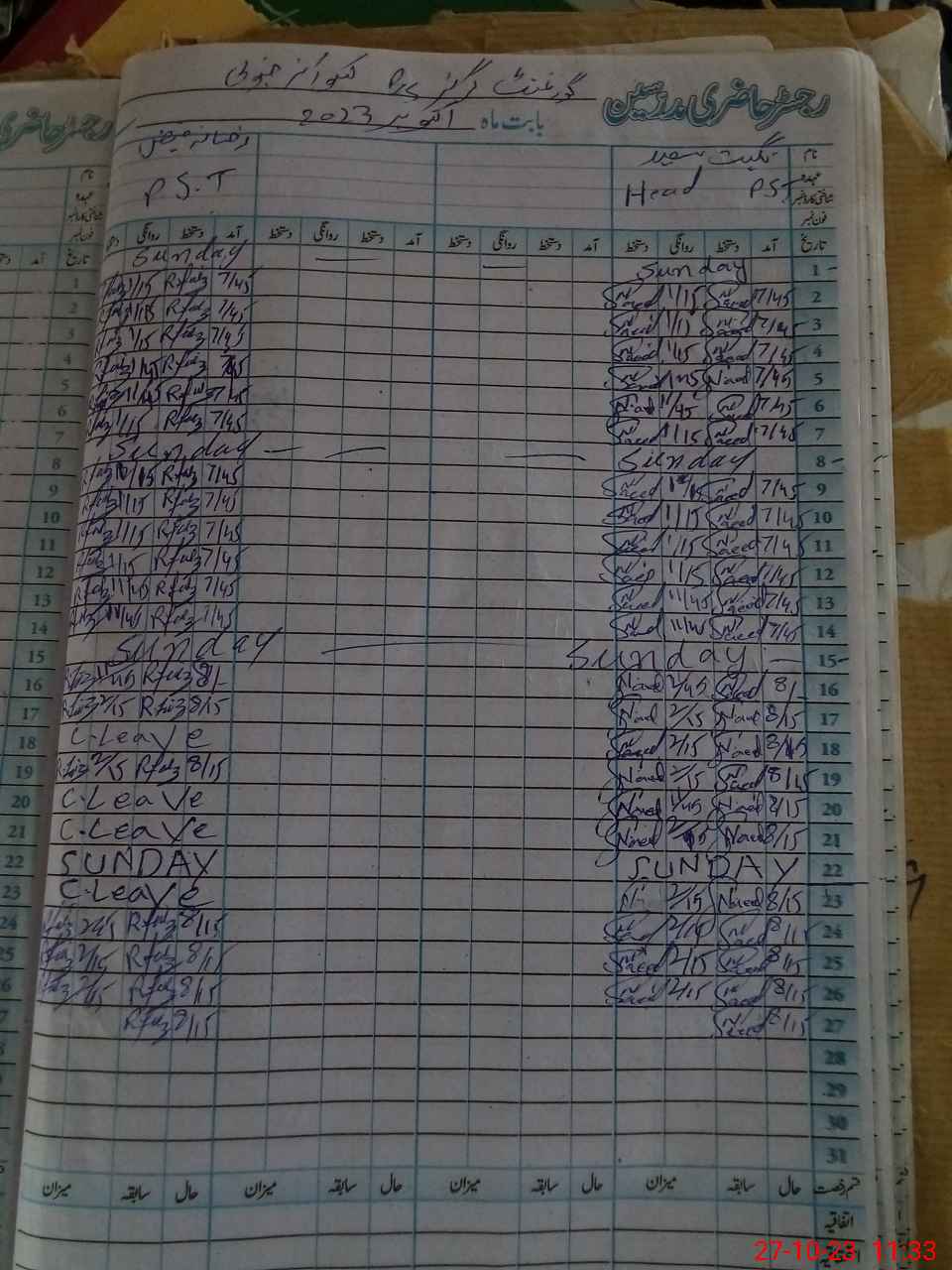 | Name: NI**** SA**** Designation: (School Headmaster's/Headmistress's) PST Phone/Cell Number: 03**** |